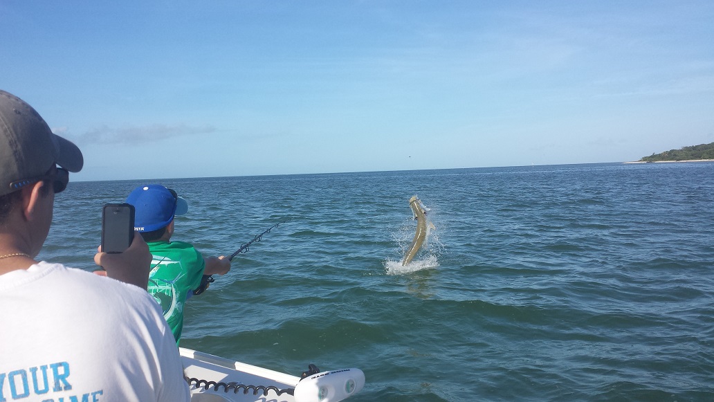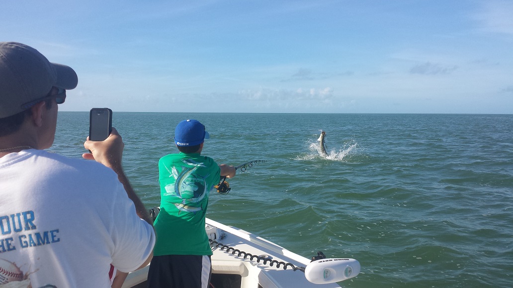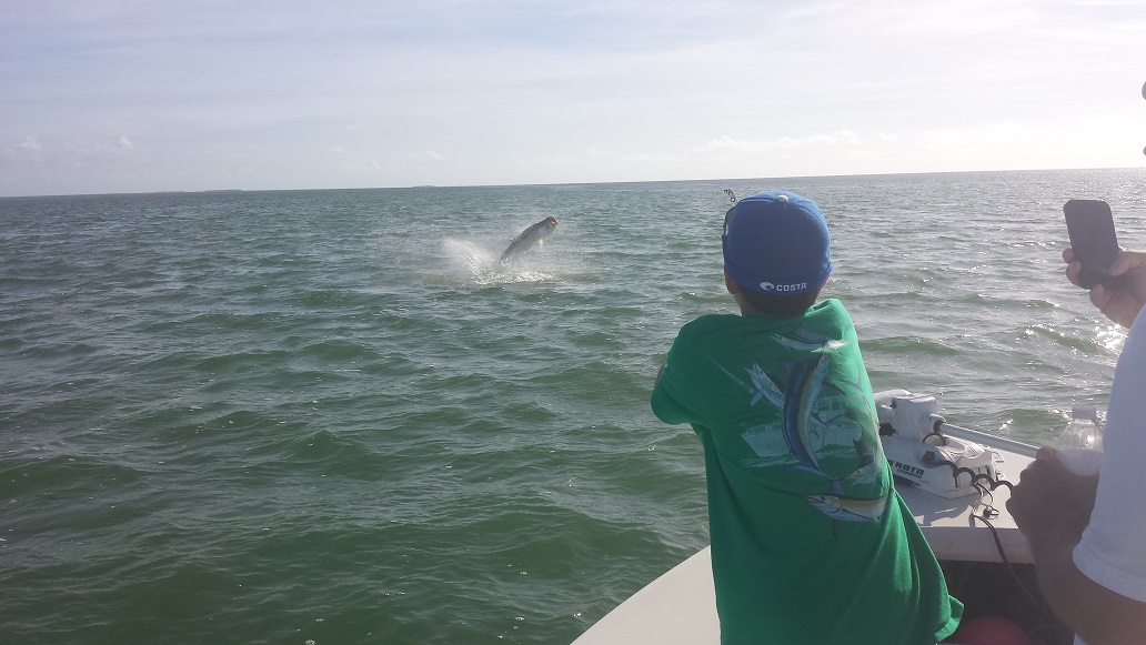 Tarpon in January in Islamorada? You betcha! It’s still been unseasonably warm and the water temperatures are in the high 70s so there have been a few tarpon around. We’ve been seeing them in just about every area we normally fish in the spring, not always tons but you have a good shot at getting a bite. Mostly in the backcountry areas, and along with them are plenty of sharks to keep you busy. We tried yesterday though we did not get any tarpon bites, but did catch cobia, hammer head shark, and plenty of blacktips. Today we had 2 tarpon bites, and landed one fish a lunker of 150 lbs. Young Nick put the wood to him and caught him in 15 minutes! He put on a great show. I talked to another fellow guide he had some tarpon action as well. I will likely keep trying a little bit as long as it stays warm, there has been some big giant black mullets around that have been fairly easy to catch which work well for bait. If your down here and thinking of a january florida keys fishing charter, give me a call! I’ve got some dates open as we don’t get really cranking with business until february again. 1 for 2.