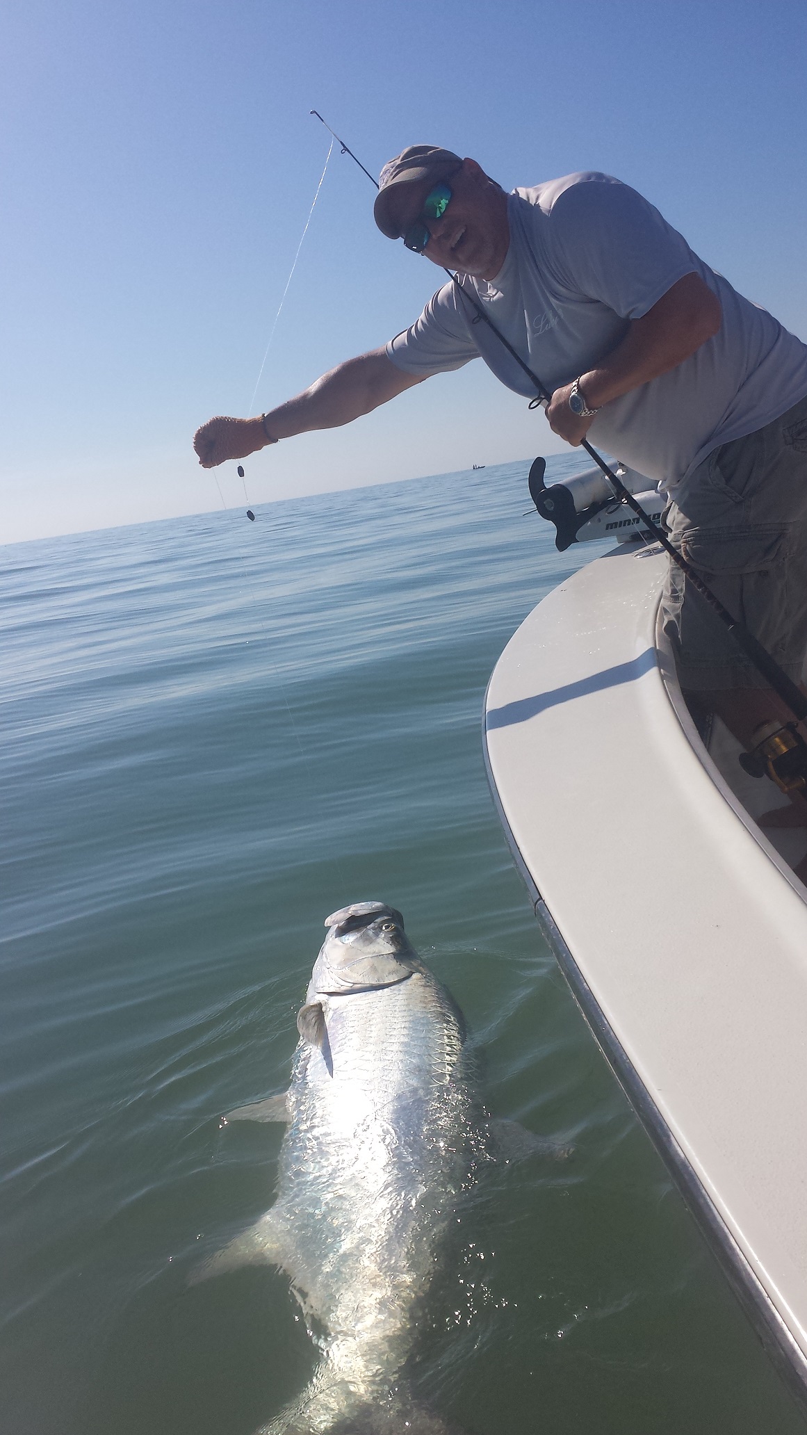 Lots of fish again today. We had a bit of north wind in the morning, followed by it laying out to nothing, followed by some westerly wind in the afternoon, then south when we got close to home on the way in. Couldn’t make up it’s mind. But light breezes and the fish were thick. The tarpon weren’t feeding very actively but were definitely around, we saw plenty of rollers and a few busting and free jumping. We caught a couple along with a nice bull shark fishing fresh mullet. As it did the last couple days after the tide started to really roar in, the weed got very bad and you could not longer really fish the channel. So we finished the day with some triple tail and trout. I’ve heard there were a lot of fish further up off the mainland and much less red weed to deal with, so may venture up there tomorrow. 2 for 2