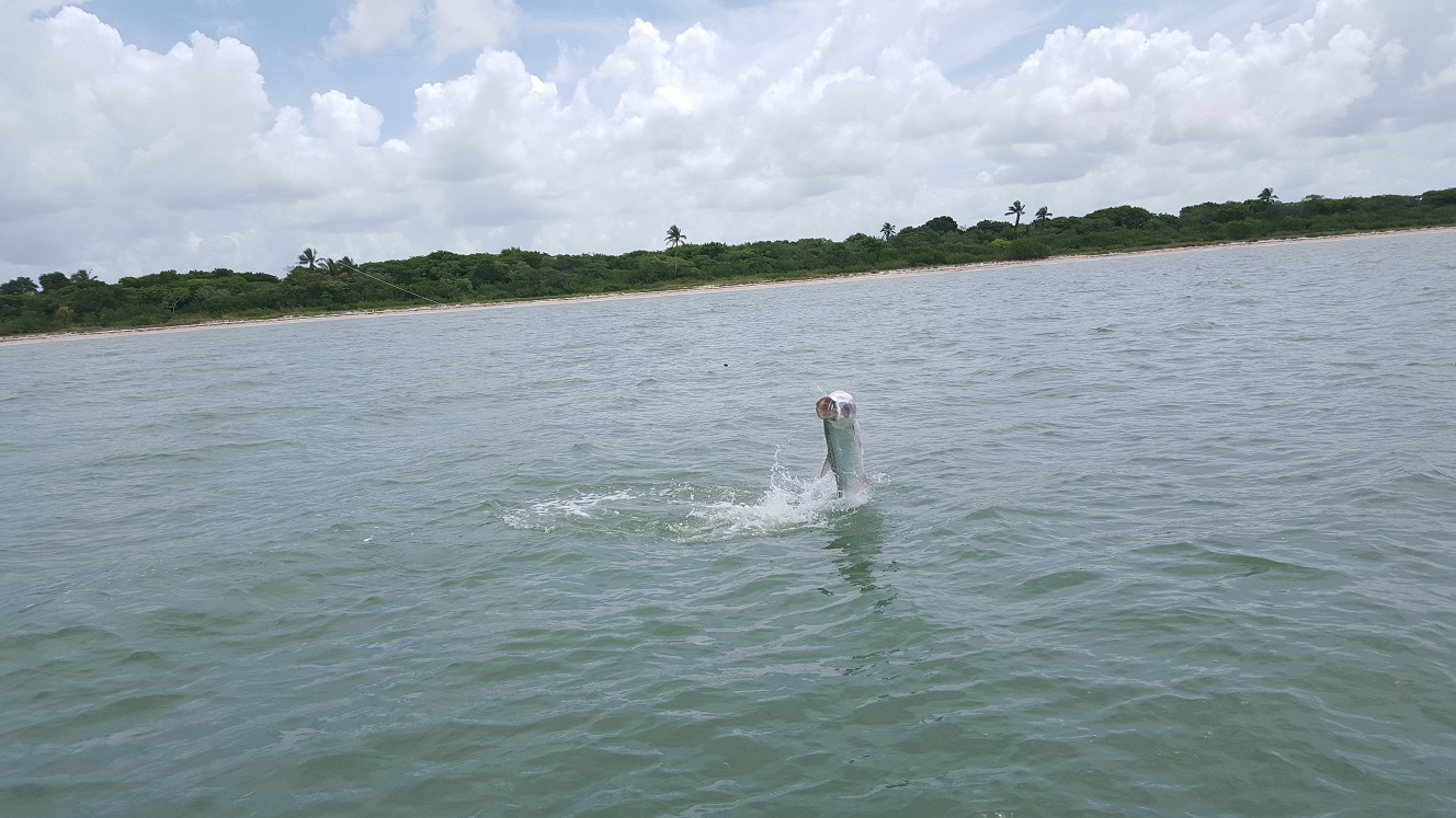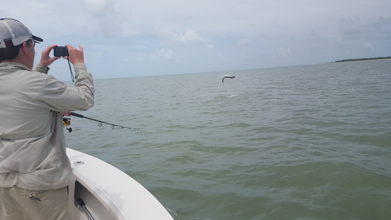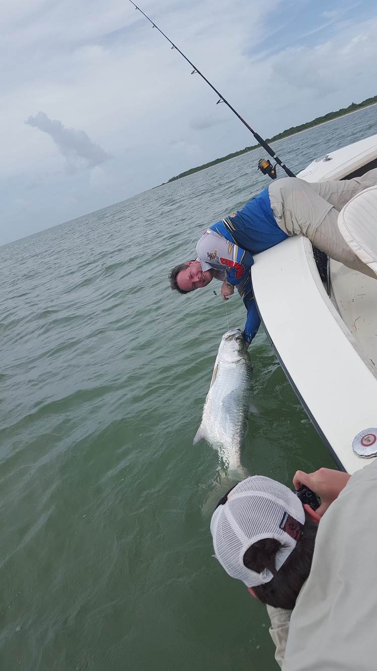 Well more tarpon fishing today. Yesterday we did other stuff and had fun with trout, snapper, snook, and other creatures. Today my angler Ian came from Australia with his family, his son Oliver was fishing today too. He had hopes of landing his first swordfish and silver king. Unfortunately swordfishing yesterday they had a fish on the leader within sight and pulled the hook on him. A heartbreaking loss though that is fishing! Anyways we left out early today and caught some bait on the way back. Mostly large black mullets the silvers have thinned out, a few throws and we had 3 dozen baits. We fished off the beaches of the cape and saw tons of fish early. Moved around quite a few times though they were just not biting we saw a few other boats and nobody we saw hooked up. Lots of sharks kept us busy though and Oliver had a great time catching them. We ran further up the beach and found some more fish later on as the tide was quitting. I decided to wait until the tide turned since we had seen fair numbers of fish and eventually we got into a good tarpon bite. Ian caught 2 out of 4 and was thrilled and Oliver landed 15 sharks total. It took some patience but in the end persistence paid off. Sometimes you have to fish all day to get those few cracks at the silver king! A couple days ago we did tarpon fish back there most of the day in the harder southeast wind. We only had 1 bite we missed and lots of sharks. 0 for 1 and 2 for 4