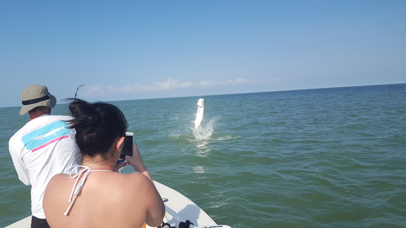 Today I got back out tarpon fishing after just doing a half day yesterday of ‘rod bending’. I headed out into the backcountry as a buddy of mine said a lot of fish finally started showing up in the channels and other usual haunts the previous day. The fish way in the back off the beaches hadn’t been feeding too consistently so I was happy to hear there were some big schools of fish in new areas. Anyways we got there early around 8 AM and had a nice incoming tide. The sharks were around and we caught several of them and started seeing some tarpon rolling. They weren’t super happy though finally after an hour or so we hooked and caught a nice 50 lb fish. After that we proceeded to catch several more sharks and a few other odds and ends, and finally after about another 45 minutes when we were getting ready to pack it in, we hooked a large 110 lb tarpon! He put on quite a show and we got several nice jumps out of him, and he dragged us for almost a mile. After that we called it quits and finished the day catching a handful of trout and snappers. Fun day! I’ll be at it again tomorrow on a group trip and tarpon is the request, hopefully they will still be there! It sounds like Sunday we are getting a cold front and it will be in the low 60s for a couple nights. That will likely shut the tarpon down for a few days though it looks to be warming up right quick after that. Just when things were starting to get good… 2 for 2