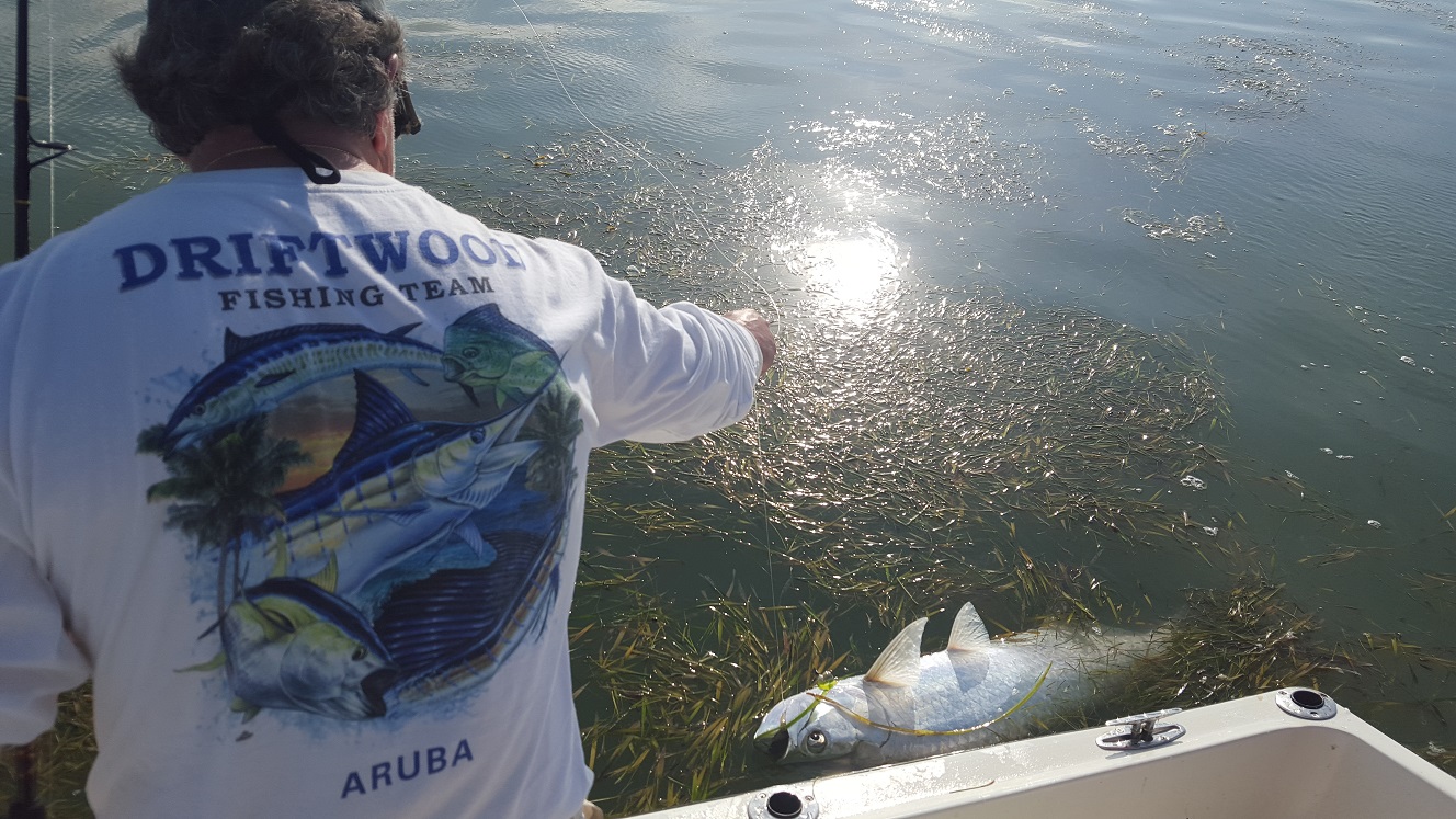 5/20/16 Today we were really after sharks and more action as the guys had fished the previous night for tarpon with another guide and didn’t have much luck. We tried an area but even the sharks weren’t cooperating so I ran to a different spot. There were tarpon rolling everywhere and we jumped a fish fairly quickly. A little later we finally hooked and landed a nice smaller 40 lber. Then we caught a few sharks and a big sting ray. Then we moved a little bit as the grass got real bad drifting in the channel. We hooked and landed another smaller tarpon of 50 lbs or so. And a couple more small blacktip sharks. Anyways a nice surprise. 2 for 3