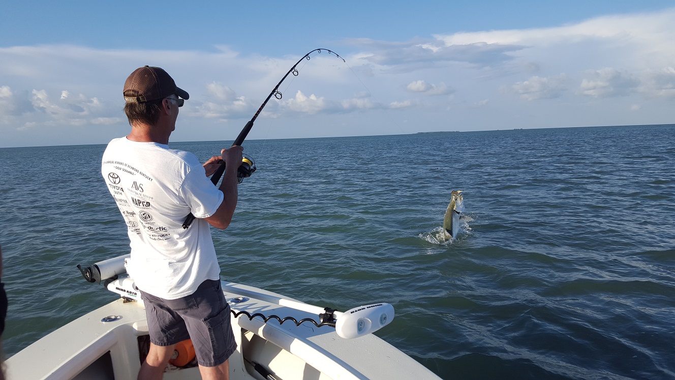 Got out today for a full day after having a much needed day off yesterday. The winds kicked up quite a bit, blowing a good 15 mph and probably 20 mph by the time the day ended. Anyways I had Mark and Steve out from Kentucky and they are also fishing with me tomorrow. We left out early and caught a bit of bait in the backcountry. Some mullet have been showing up in the usual summer time spots hopefully they stay there! After a half hour we had enough to fish for the day with. We jumped in some channels and had the start of the falling tide. We soon hooked a nice 90 lb fish Mark landed pretty quickly. Nice to get a bite straight away for sure! After that we had a little shark action and after an hour or so we hooked another tarpon of about the same size. He ran around a little bit more and we chased him down and got some good pictures by the boat. After that it was Steves turn he hooked a nice lemon shark about 100 lbs or so. Then he got his shot at a tarpon not quite as big but a nice fish none the less, a 40 lber. After that we caught a few more blacktip sharks, a lemon, and a couple nurse sharks were mixed in there. Action packed and didn’t have to move much all day. We will be at it again tomorrow hopefully the fish stay put! 3 for 3