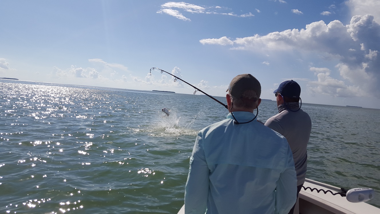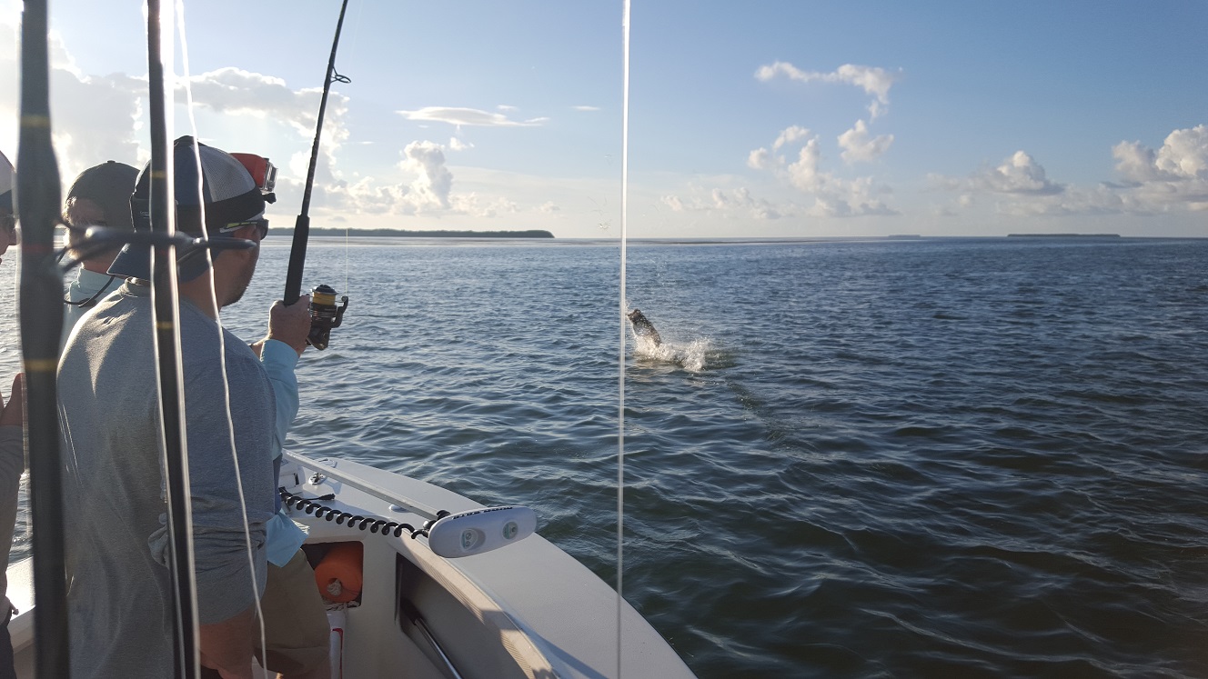 June started off with a bang. I had Chris down with his dad and brother out fishing for tarpon. We were originally going to do a half day though I told the guys a 3/4 day would be much better as we can make the run into the everglades and have time to fish a couple different areas. They said that was cool so we did it. I had bait leftover from yesterday. We found some tarpon in some channels around flamingo, saw several roll right as we pulled up. Soon we hooked a tarpon but jumped him off and caught a big lemon shark. Later we hooked another tarpon and we landed him a nice 70 lb fish. After that things slowed down a little we caught a big jack, saw a few more tarpon roll and tried to get in front of them, but no more bites. The tide quit and we went to spot #2. Saw a few tarpon rolling once in a while, and caught several more sharks. Then we hooked up a nice tarpon and landed him. A few more sharks and then we hooked our final tarpon of the day and landed him as well. All in all a great day, I think the summer time fishing will be very good again this year! 3 for 4