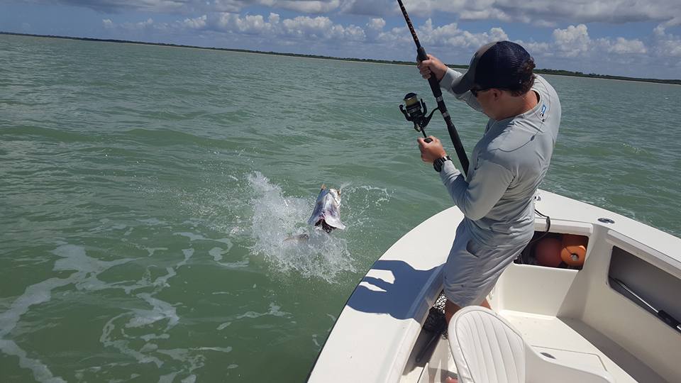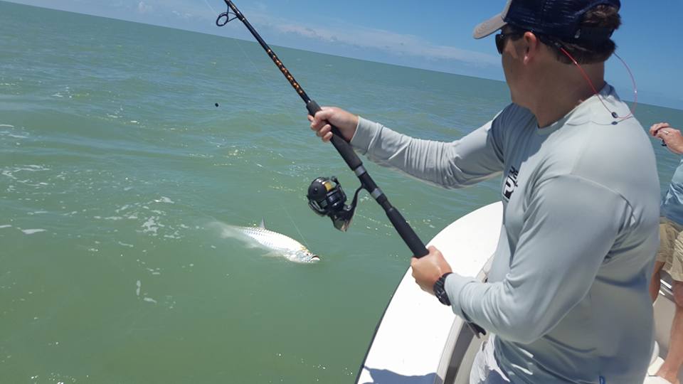 Got out today for some tarpon we caught the last trickle of incoming tide this morning and were able to load up on mullet. We looked around hard for fish and didn’t find any in the first 3 stops… was looking like it might be one of those days! But eventually we stumbled into a pack deep in one of the channels in the everglades. We jumped around several times and finally got one to eat that we caught. We also caught several sharks. After that we ran off the beaches to take a look as it was nice and calm until that point, though the wind did start blowing once we got there. We found some tarpon free jumping and busting and were able to get in on them with the tide already starting back in. However they didn’t make it easy we moved around again several times and caught some big blacktip sharks, then finally we saw a couple roll and got in front of them and caught 1 soon after a nice 75 lb fish. After that it was almost the end of the day but we managed to get one more fish of 50 lbs or so to the boat before he jumped off for a technical release. Anyways like I said we had to work for it but had a great day! Back at it tomorrow. 3 for 3