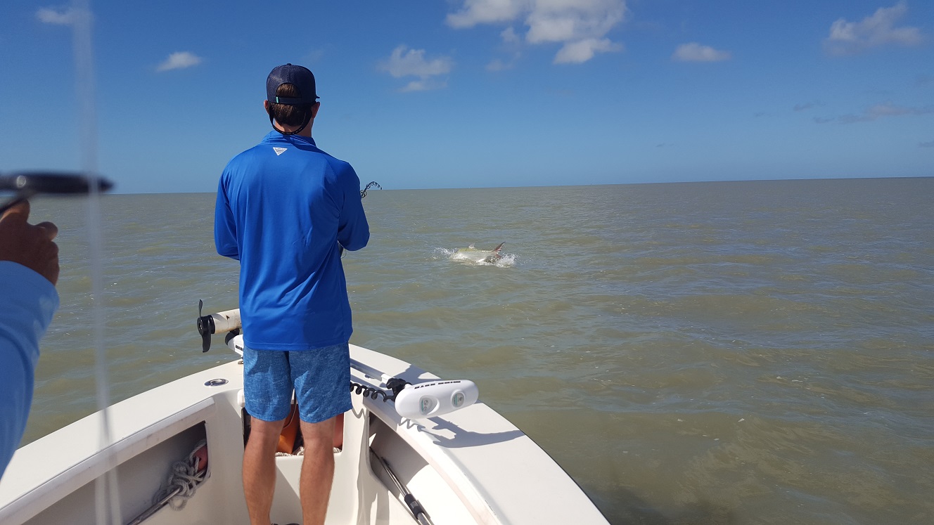 Got out with Paul and Josh down from british columbia for a couple days. Winds were cranking north/northeast both days, the first day was blowing 25 for a while, today it wasn’t quite as bad but picked up in the afternoon but still a solid 15-20 mph. Anyways we ended up giving tarpon a good try both days. The first day they each hooked one in the morning, the fish weren’t biting great but we moved several times and fooled a couple. One fish we got to the boat very quick and he darted off again and pulled the hook, the other we jumped off straight away. Anyways good enough for a technical release but still felt like we left empty handed. We did catch a few sharks though. We finished that day bending the little rods with various critters. We crushed the big black mullets on the way home which was a nice find. The next day we caught pilchards in the morning and also had the mullets from the afternoon before. We tried some snook way in the backcountry, not much luck with them and no tarpon in that area surprisingly. So we ran back down the beach and found some tarpon busting where they were the day before. The guys wanted to try that again so we gave it a good effort. Josh was rewards with a big blacktip shark, and a big 12 lb snook which was a nice surprise. We moved around a bit and then soon after he hooked and landed a big 120lb tarpon! He fought very hard and we got him to the leader multiple times but before we could get him to roll over he cut us off on the boat with one quick kick of the tail, but we got some good jump shots at least. Then it was Pauls turn he got a nice 70 lber after the next move, which we got up for good boatside pictures finally. After that we called it a day as the rain moved in and wind was kicking up. Fun couple days for the boys they will be back soon! 1 for 2 and 2 for 2