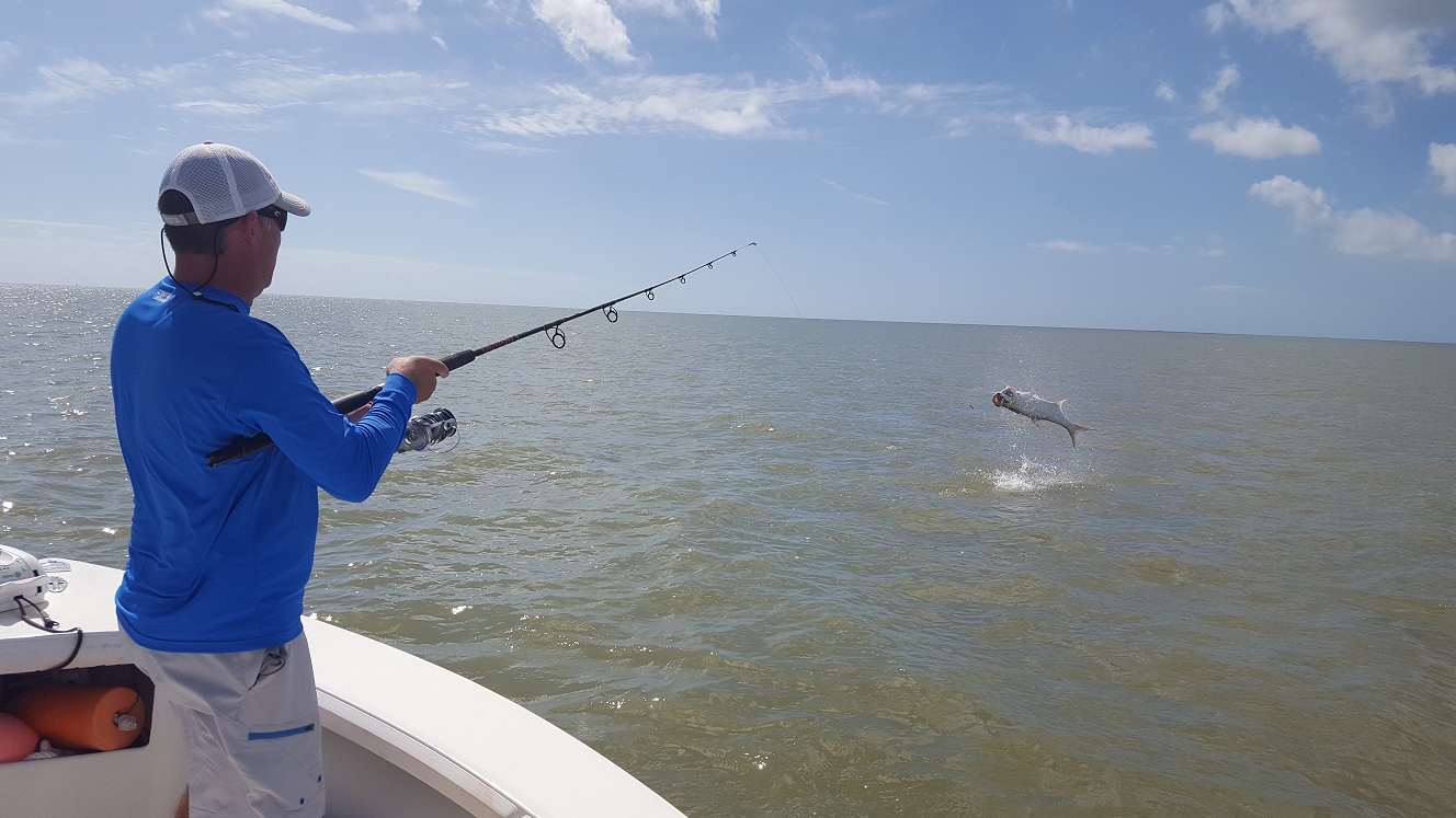 Haven’t been tarpon fishing much this week we’ve had some extreme winds and such. We have seen some fish in the canals while we were snook fishing. Today the wind laid down a bit and we were able to get out on the beach to fish in the afternoon. The tarpon were out there and we caught one fairly quickly in the last hour of our day. We also got a small one while snook fishing on a live pilchard. Anyways they may still be catch able for a while until we get a real hard cold front. May give ’em a try again tomorrow! 2 for 2