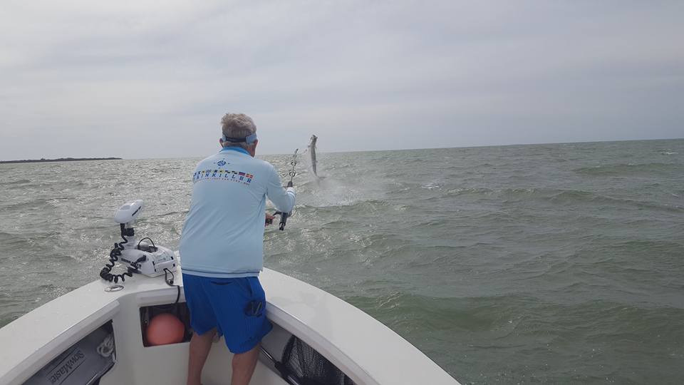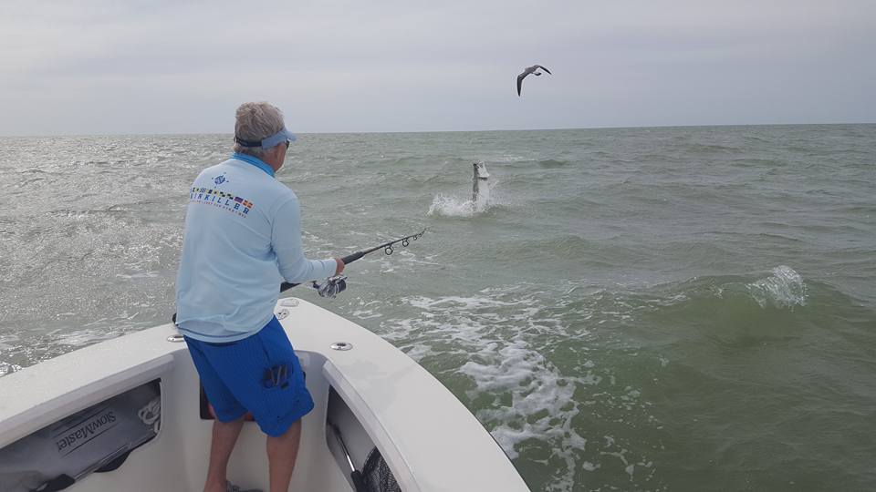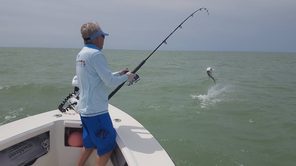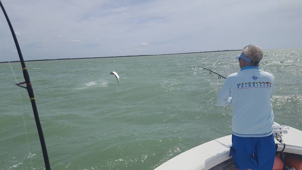 Got out with return customer Darrel Brock today, the first of his 3 days fishing with me. We caught bait yesterday afternoon good so I had that going for us. We left early and got out into the backcountry, the ride wasn’t too bad though it was windy with a hard east breeze. Once we got back there it was nice the first couple hours, then got a little rough but not really too bad for a larger boat like mine. We found the tarpon right off the bat though they didn’t really bite at first. We moved several times and tried a few different tactics, then after a couple hours we finally jumped one. After that we ended up getting 3 more bites, catching a 30 lber, a 60 lber, and 100 lber, along with about 25 blacktip sharks! It was good action and nice to see the fish biting a little bit. Funny as soon as it got a little nastier the fish started biting! The ride home was a little rougher, but really only bad for a little bit. I think tomorrow we may try the same plan of attack, sunday we have a half day so will definitely be fishing local then. Hopefully they cooperate! 3 for 4