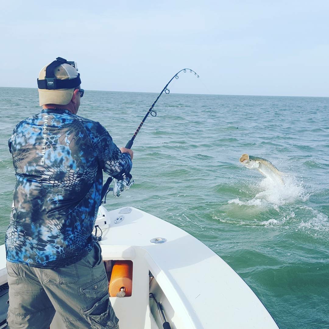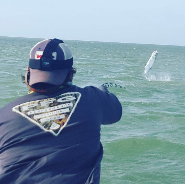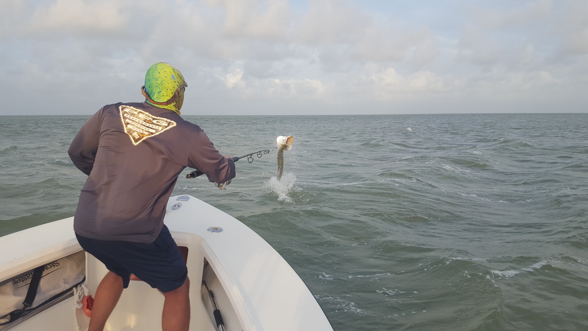 Got out with Christian and his dad Jim today over from Louisiana. We had a full day scheduled but it was blowing 25 knots out of the south… very snotty so I said a half day would be best just sticking close by. Most boats ended up cancelling today, so they agreed and want to get out so we went for it. Ended up hooking a big 110 lb or so tarpon within the first 15 minutes! Christian battled him well and caught him quickly within 20 minutes or so. Got some good pictures and released her to fight another day. After the the sharks moved in a little… some little blacktips, bonnetheads, and did get a nice 50 lb bull shark. We moved a few times and didn’t have any more tarpon action. I was limited on bait but we caught a dozen more mullet which was good. We tried a couple more spots, the last one we saw a few tarpon roll and the tide had started to fall so I thought we might get another shot. But unfortunately no we gave it a good 30 minutes and stayed a little longer since I knew they wanted to be out for the day, but it didn’t happen again for us. Anyways the wind was still cranking and rain storms were moving through so time to go. Glad to get one on a day like today! Back at it tomorrow, the winds are suppose to die down to 10-15 through the weekend which will be much nicer. Hopefully the tarpon get happier too! 1 for 1