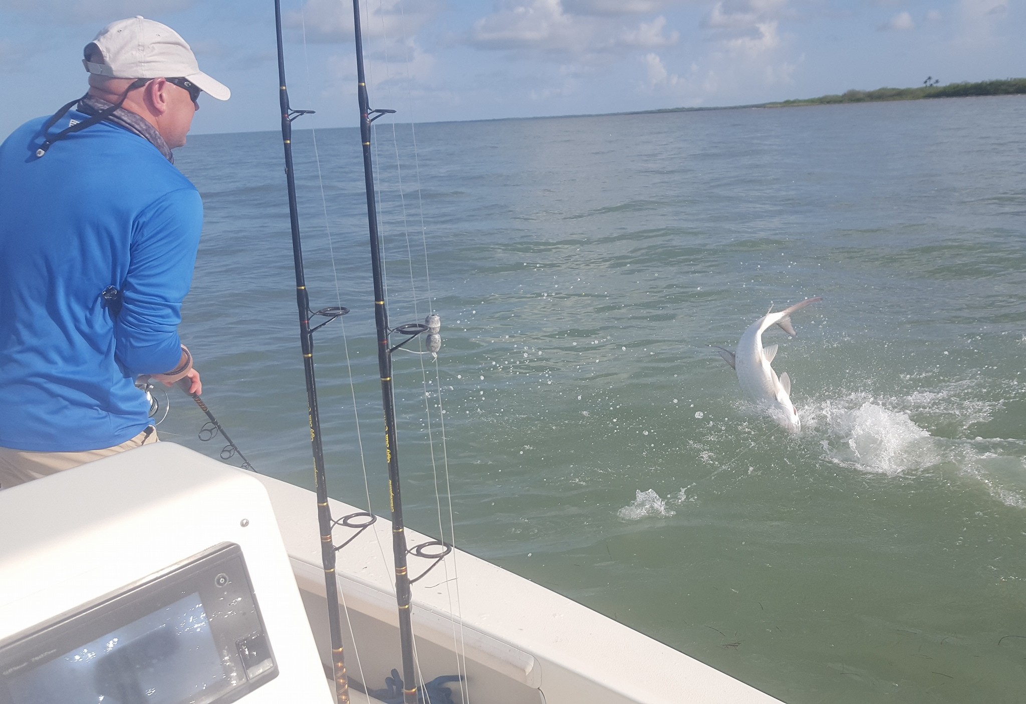 6/15/17 – Had return customer Chase out with his brother Grant and father. We had a tough day never really found many tarpon that wanted to cooperate. Plenty of sharks though. We did find one decent group of tarpon in the late morning, but just couldn’t get them to bite. We worked hard at it too. 0 for 0