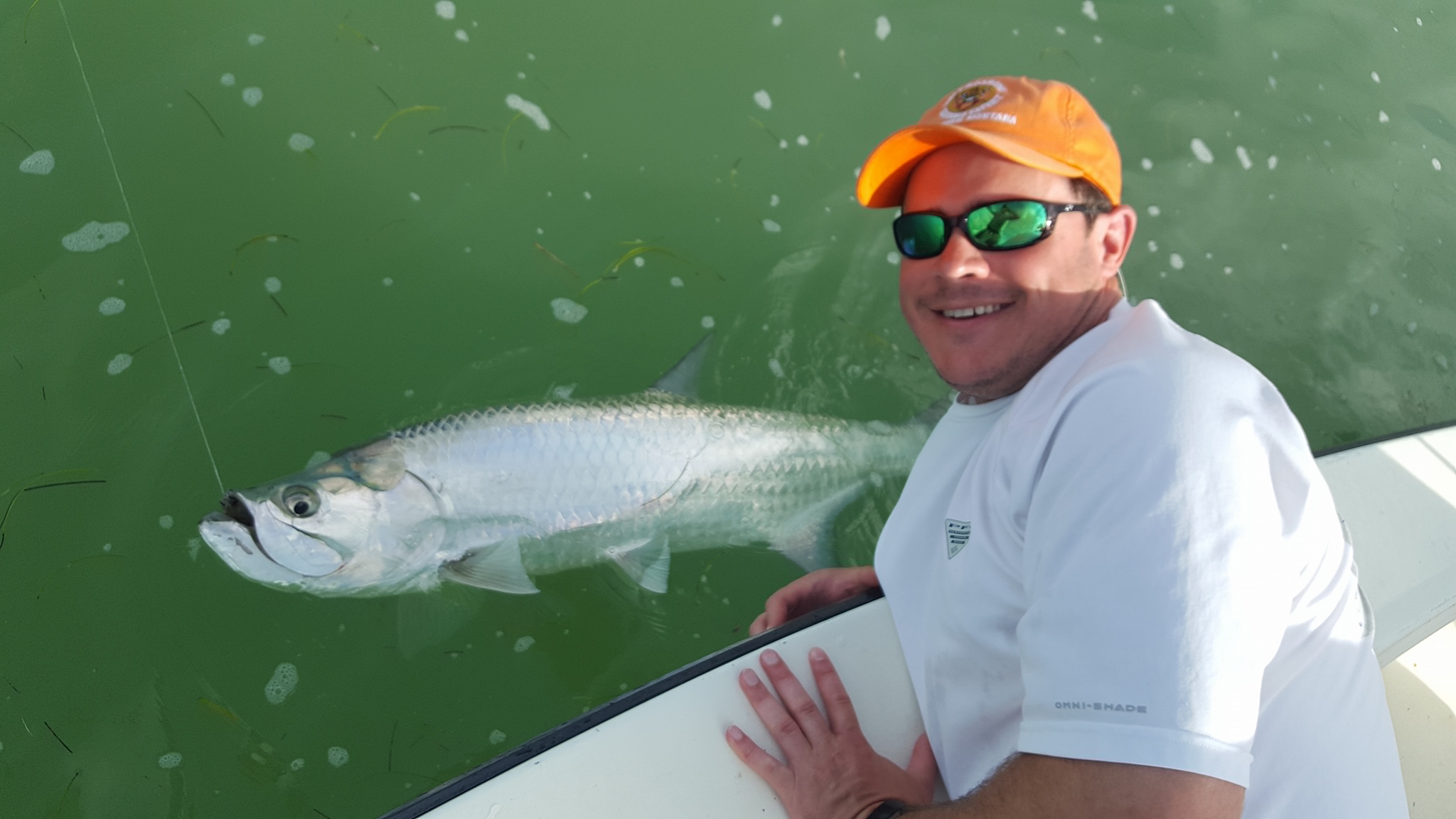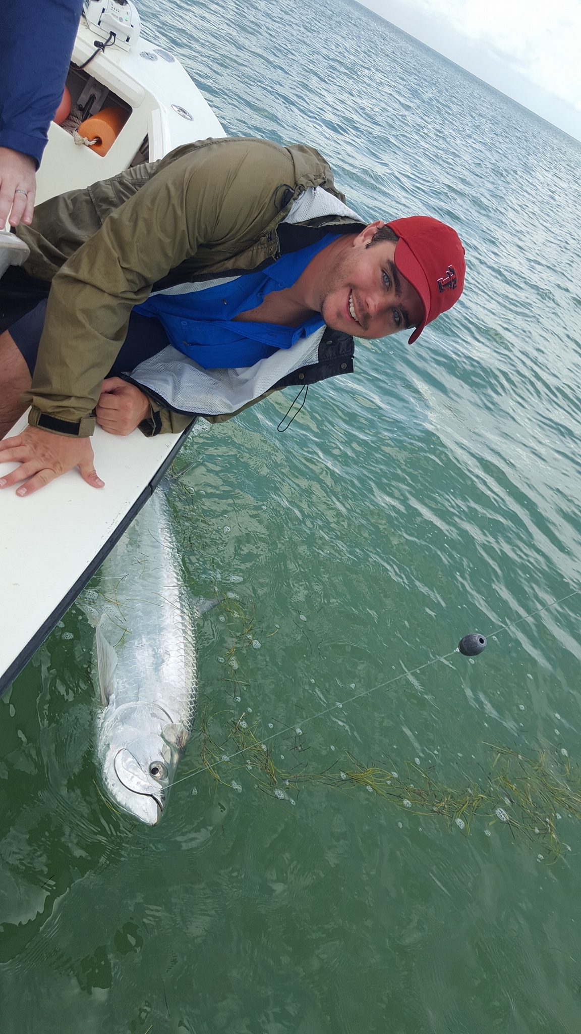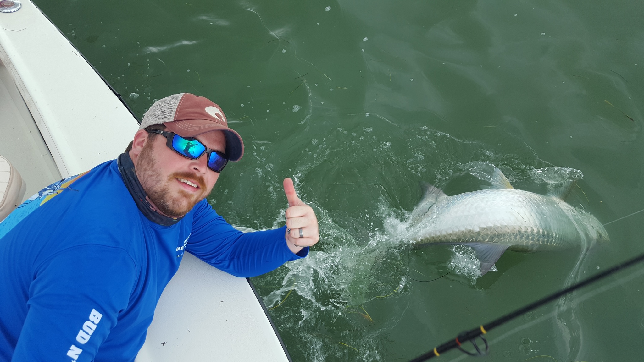 Got out with Emory today for a half day tarpon fishing charter. Normally I don’t do many half day trips this time of year since the bait is much easier to catch in the backcountry, and the fishing is usually better too. But we had a slow day back there yesterday and I was able to save some bait, so figured wed just try to hit some local spots early and hope it’d be better for us. The early bite was good though it was all over by 7:00. We caught a nice fish of about 75 lbs, and then had another one on that we pulled the hook on. After that things slowed down. We ran down to the bigger bridges, didn’t see a whole lot of anything, no more bites in a few spots down there. Tried out on the oceanside and did find a handful of fish out there, but the tide was dying and they were not responding. We tried back near home for the last 30 minutes and had the incoming tide, but didn’t see much. Anyways glad we went early and got our fish. Tomorrow I’ve got a full day, may try locally first thing and then shoot back into the backcountry. I heard today it was much better where I was fishing yesterday… as I’ve been saying it’s really day to day, one day they are pulling you out of the boat, the next day you don’t even get a sniff! 1 for 2