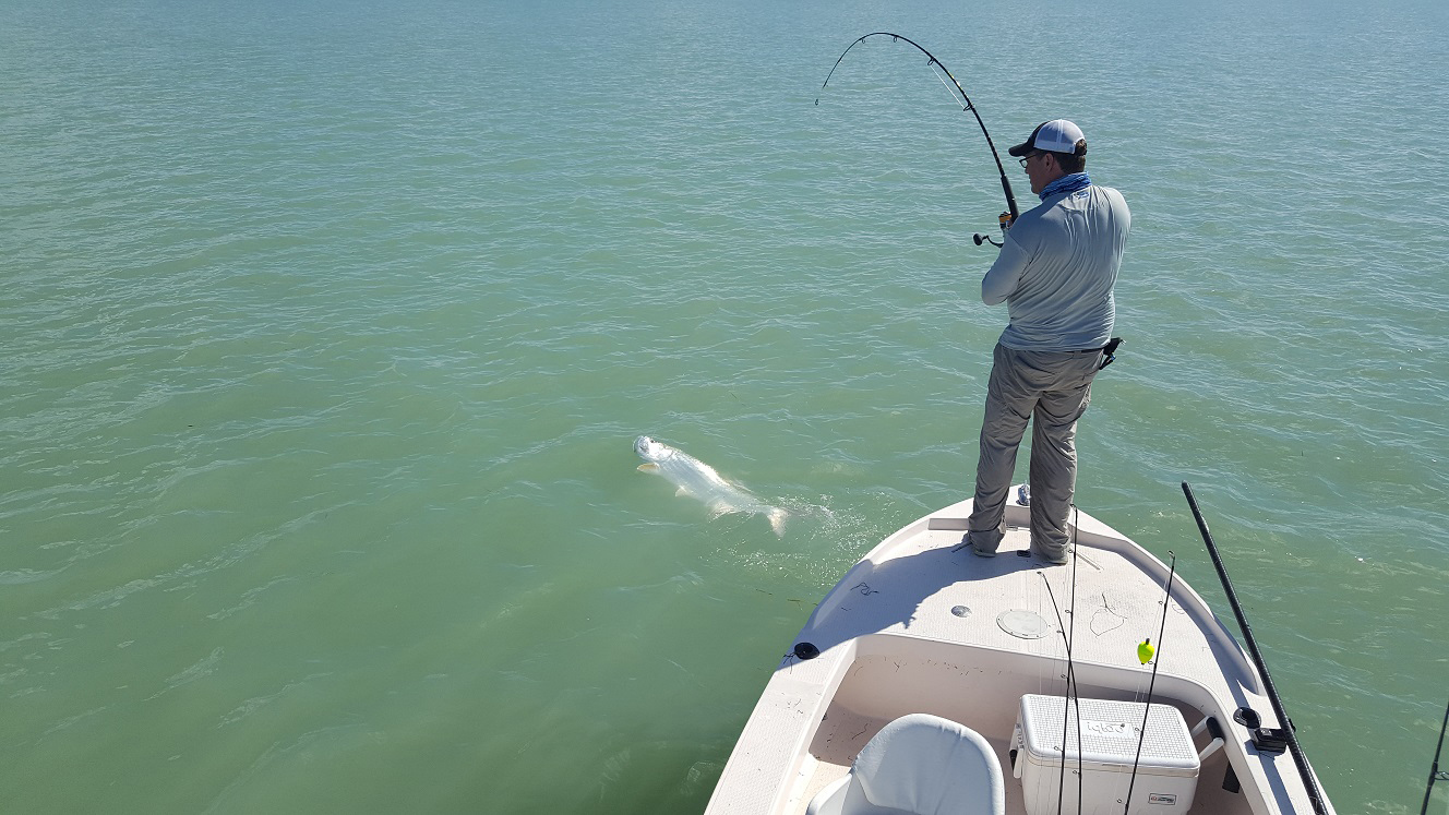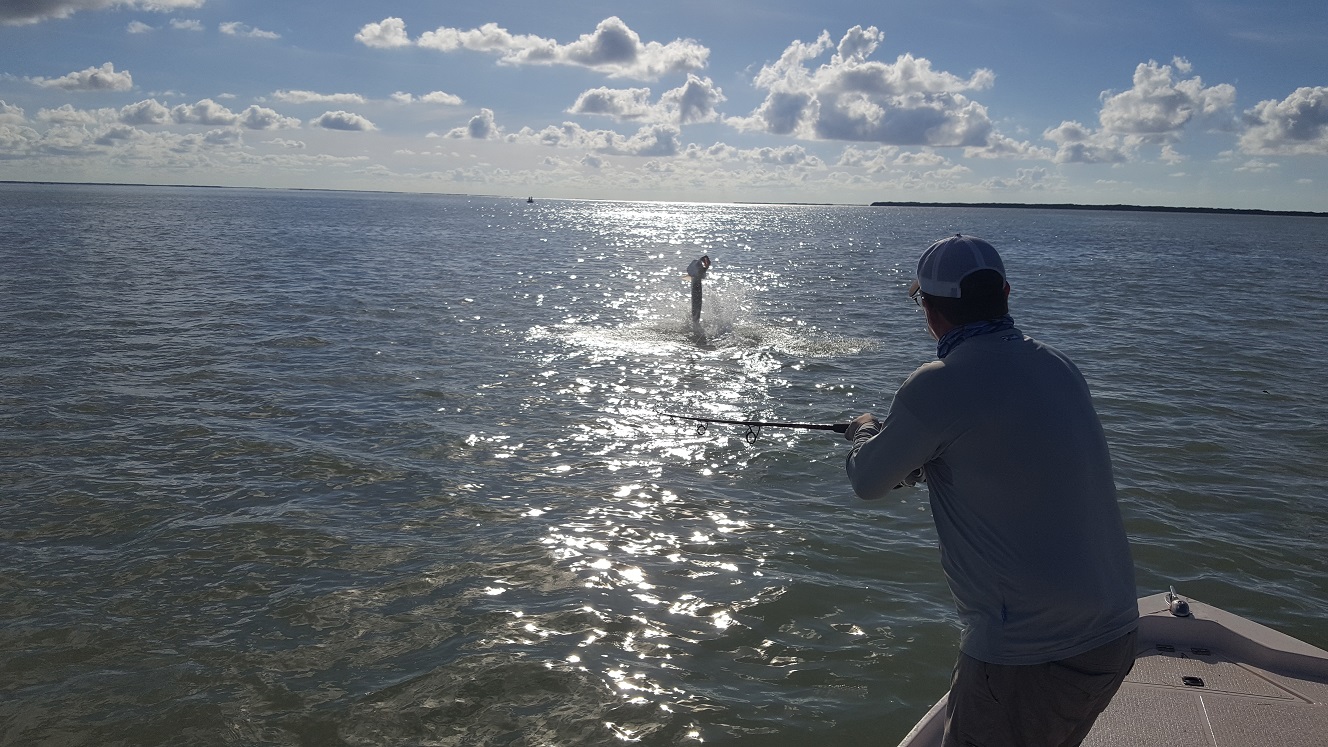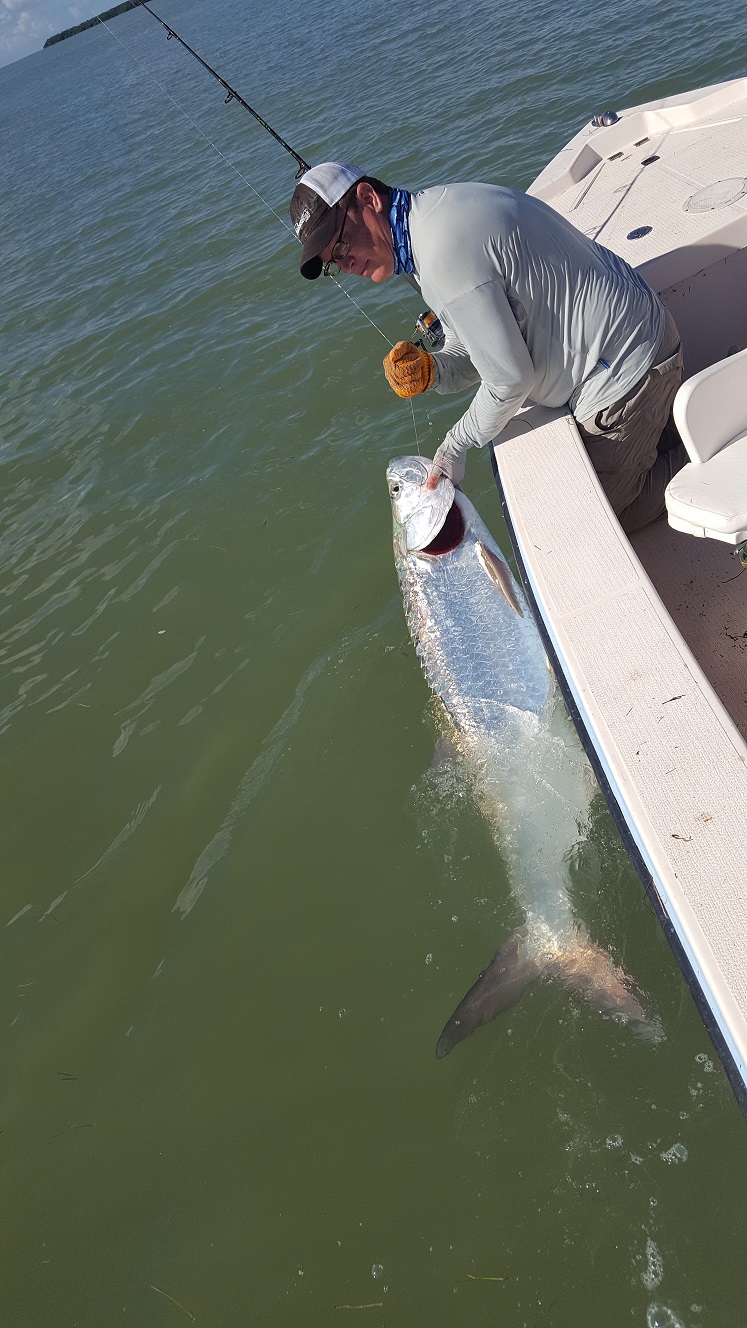 Got out with Dan Styf today he fished with me a few years ago and we had caught some nice tarpon in the summer. Today it was pretty slick calm early and then a nice light easterly breeze later on. We caught bait and saw tarpon rolling out in the open water as soon as we got in the area I wanted to fish, we had to jump around a few times, but eventually got in front of some hungry fish. We had good incoming tide for a while and we ended up getting four nice tarpon, all big ones in the 65-100 lb range! One never jumped which was cool I thought for sure it was a big blacktip shark, and another one we had to fight for a good 30 minutes he dragged us for quite a ways. Also one fish we didn’t get to the hand, but got him on the windon leader next to the boat and he took off and spit the hook on another jump but got our technical catch anyways! Just an epic morning you can’t ask for much more than that… We also caught some blacktips and a big lemon shark. After that we tried off the mainland and caught the start of the falling tide. Didn’t see much for tarpon our there though we caught some little sharks. We got a nice triple tail that floated by, and then spent the rest of our time looking for them. We had several shots and hooked one more but he got off near the boat. Wow what a day just everything Dan had asked for. I’m fishing the next few days then out of town Saturday, I’ll be back on the 23rd and have some availability from then on to the end of the month. The tarpon bite has been strong and can remain that way through October sometimes. 4 for 4