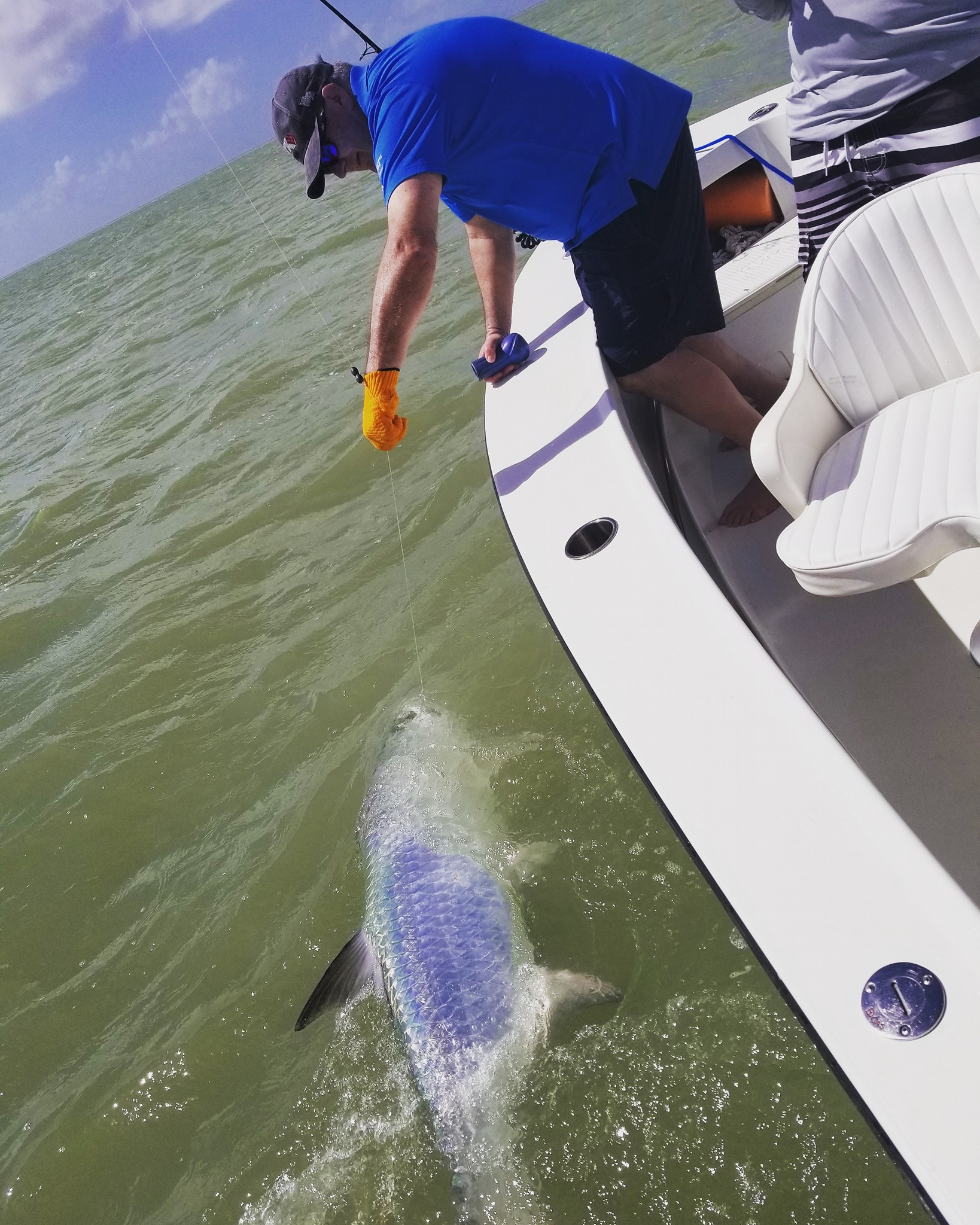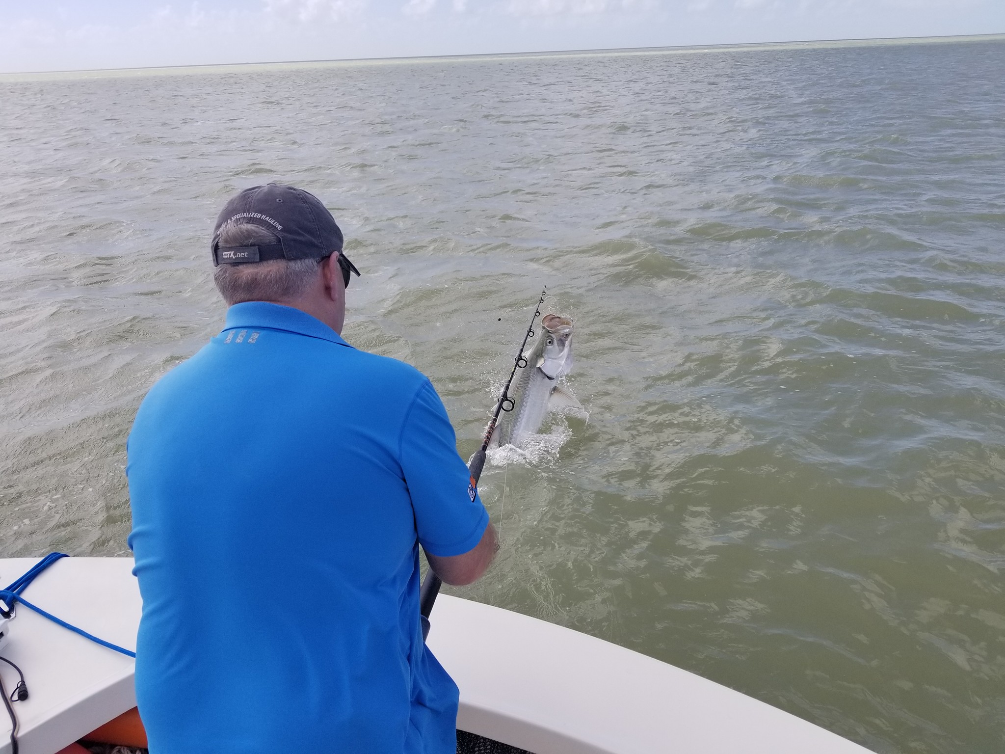 Got out with the Kurt Butcher group again today whom I fished over this past weekend. I had Art and Mojo today. Mojo wasn’t a serious fishermen so he let Art decide what to do, and Art wanted a tarpon! So we headed out and caught some bait to start. I just got new cast net which worked really well for our bait fish so I was excited about that, just easier to throw and dump the bait so it’s much quicker and easier. The winds were cranking so it was a good test. We headed to the backcountry and found some fish early on. It was very muddy though with the hard winds, but we had good tide falling the whole time. No bites to start but we had fish rolling in between our baits. I was very surprised we never had a single shark bite either. After about 1.5 hours though Mojo jumped a smaller 30 lb tarpon! He sucked the bait in and spit it as he jumped though, never even getting the hook I don’t think. After that we didn’t see many tarpon and decided to make a move. I tried another channel where there had been some fish and we set up. Didn’t see much but after 20 or 30 minutes, Art had his shot and hooked a nice 65 lb tarpon! We fought him and got some good jumps and a nice fight, and landed the fish. He cooperated well for pictures and the boys were thrilled. After that it was about 11:30 and the guys had wanted to head in a little early. So we did that. Not bad got a tarpon for Art on a day where it wasn’t easy! Back at it tomorrow hopefully they’ll cooperate some more. Looks like the winds are suppose to subside a little by the weekend, but go in more of a southerly direction which may not be all that great but hopefully it’ll at least calm down some. 1 for 2