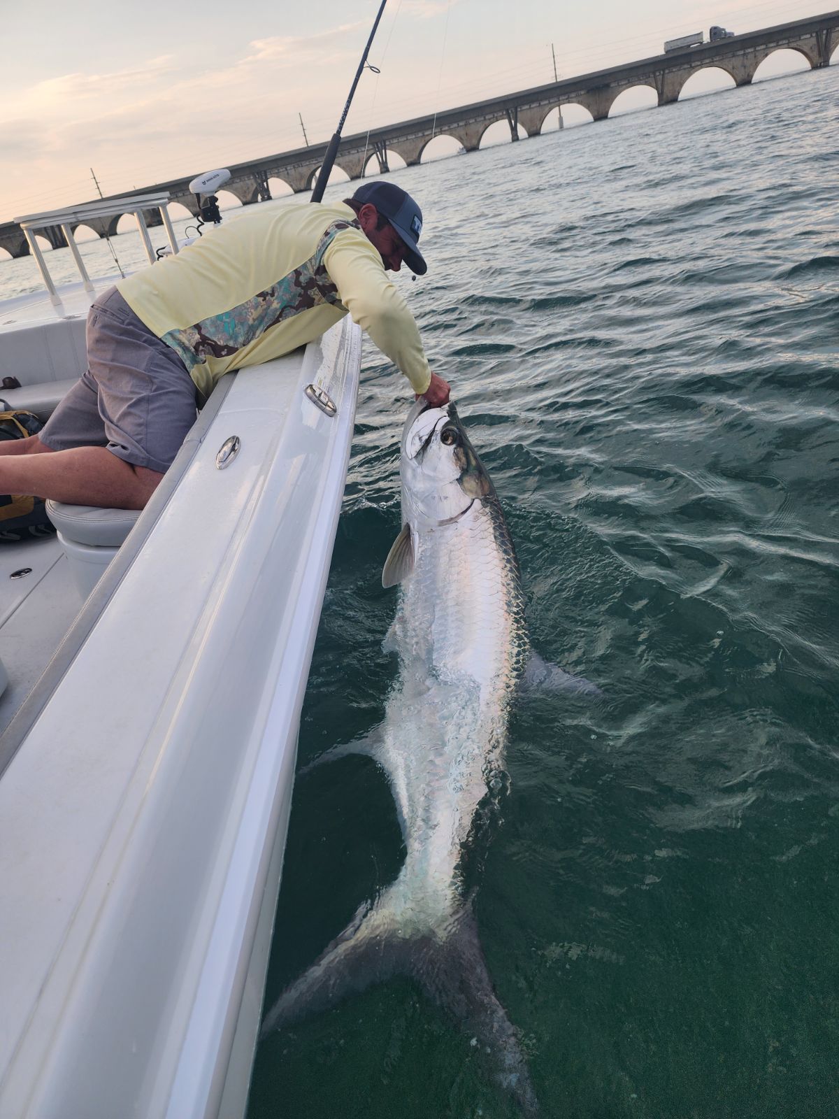 Yesterday the weather was much nicer but maybe a little too nice! It got slick calm and we saw tons of tarpon around the big bridge. I wasn’t able to get there the day before due to weather so i was hoping the fish would be nice and happy since they had the previous day off! Tarpon were rolling everywhere but they weren’t responding super great. We were able to catch one after a few moves early on for Brian that we got good pictures of. Then we went several hours without another bite! Looked good and we were in fish the whole time but again they were being finicky. Finally we got one more before the tide quit thankfully. After that we ran back up near Islamorada and fished one of the other bridges. We grinded and fished a couple more hours, and were able to catch one more tarpon and jumped off another. So all in all not a bad day by any means to get 3 tarpon but we did have to work hard for our 4 bites.