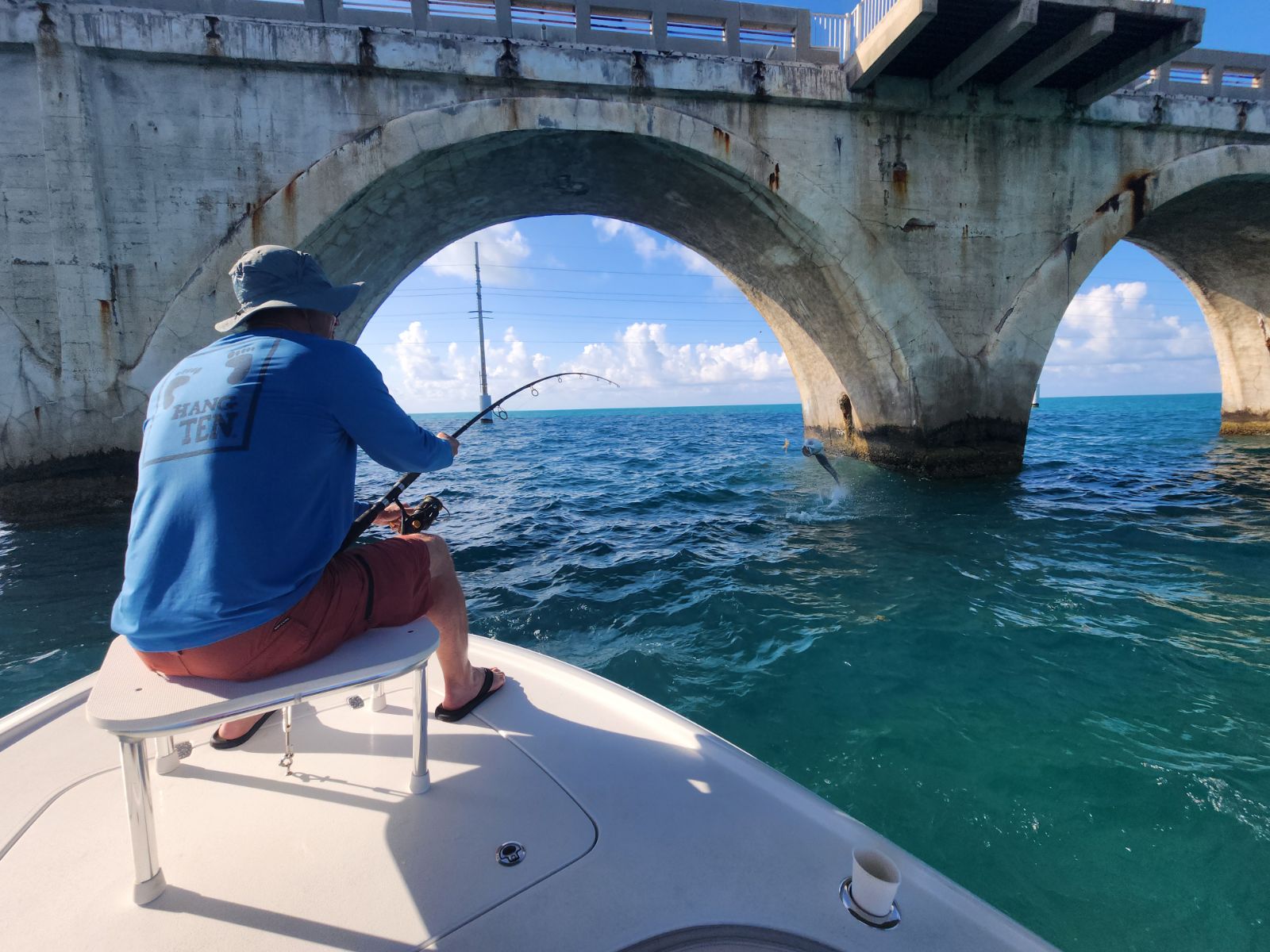 Just wrapped up another great week of islamorada tarpon fishing in May here. We had fabulous weather… it’s really stabilized for May which is nice and again the forecast still looking great in the 10-day range. Still good numbers of fish around too. We had a tournament going on last week and it was pretty busy on the water most of this week as well. Some days competing with 30+ boats down around the bridge. Though we still had good fishing overall which was great! I think we had 4-6 fish ‘technically’ landed each day this past week. A technical catch means getting them to the wind-on leader, basically the last 20 or so foot of the line. Though it was tough getting fish ‘rolled’ over which if you are wanting that glory picture is required. It really takes having the fish hooked in the proper place, having the ability to really put ample and correct pressure on the fish, and a little bit of luck to get that to happen. We are usually happy to be able to roll one fish over in a day for a good picture especially when fishing at the bridges as there is a lot that can go wrong there. But if it easy it wouldn’t be as satisfying! Anyways we had good incoming tide on our morning this past week. The bite was pretty good through that incoming, and then again on the fall in the early afternoon they rallied again. So consistent fishing through both tides. I will say after the tournament was over the fish did seem to settle down a little… we had a couple days last week where they were just acting crazy and you could tell the pressure had an effect on them… really making crazy runs through the bridge at high speed, doing figure 8s, etc… So next week should be good fishing I imagine. I did have a cancellation and could go either May 14 or 15 if someone is looking to go. June I have a few dates left as well and of course Capt. Stephen and Capt. Trent have availability as well. Those night trips are often a good bet in June as it starts to get into the heat of summer, being out in the early evening is just a nice time to be on the water and the bite often turns on near sunset.