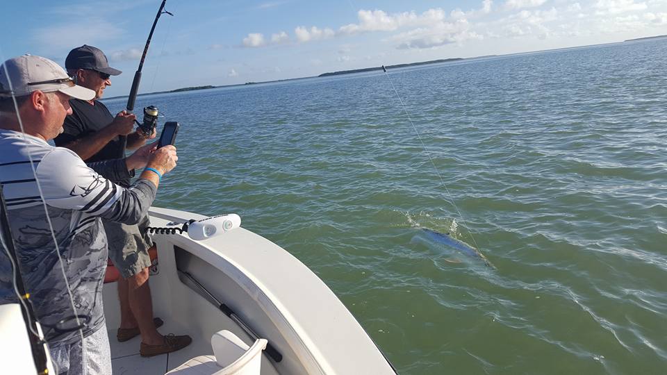 We got out on the water today after being on vacation then off the last several days. The wind was kickin’ a bit this morning out of the north and was a little chilly so wasn’t sure how great tarpon fishing would be. Anyways we caught bait easily it was nice to see so many mullet around that were very easy to catch. We found some tarpon in the first channel we stopped in and caught a shark and then a tarpon soon after! Though they quit biting after that we caught several more sharks. I had gotten a new bottom machine installed on my boat while away on vacation so was neat to play with that – the side scan sonar is very cool and useful we were marking tarpon with it in the channel. Anyways after that we took a ride and looked up the beach to see if we saw any tarpon busting or jumping. Didn’t see a whole lot, tried a couple areas and only more sharks bit. We casted artificials for a little bit and caught a snook and missed another one, then saw a tarpon jump a ways away. I used the new sonar when we ran nearby to the jump and were able to locate tarpon swimming around and set up. We ended up catching a couple more tarpon and jumped one more! Nice to have some new toys come in to be useful, we may have caught those fish without it but it definitely gave me some confidence to see them swimming by on the screen when we put our baits out. The winds had kicked up even more for the ride home out of the east and we had a bit of a rough ride for a while, but once we got in the shallows it wasn’t bad. Anyways a great day overall. I’m fishing Sunday and then don’t have much until next weekend if anyone wants to go fishing. 3 for 4