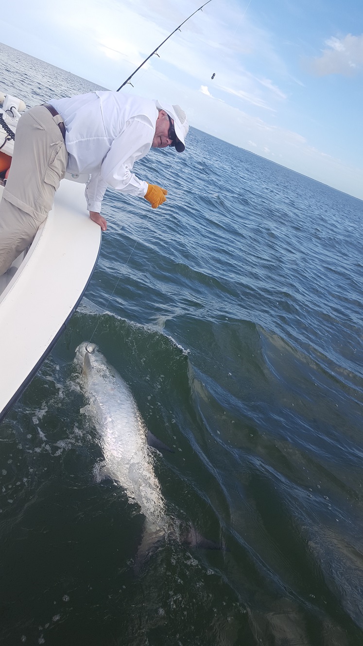 Got out again today the weather looked bad around town but we left early and beat it into the backcountry. It never rained back there though looked like they got some nasty weather at the dock back home. Anyways fishing was OK we had one tarpon bite to start with, got a technical release on him as he swam to us and we got the leader to the rod tip. After a few minutes of fighting he jumped and threw the hook next to the boat. We also caught a nice lemon shark and broke another one off. After that we rounded up some more bait and tried some other channels. Jumped another tarpon off straight away then caught several blacktips and bonnet head sharks. Also got a couple big ladyfish and bluefish on the bottom rods. No other tarpon bites that was all she wrote but glad to have gotten one and to get the day in! Tomorrow taking a day off after a busy week. 1 for 2