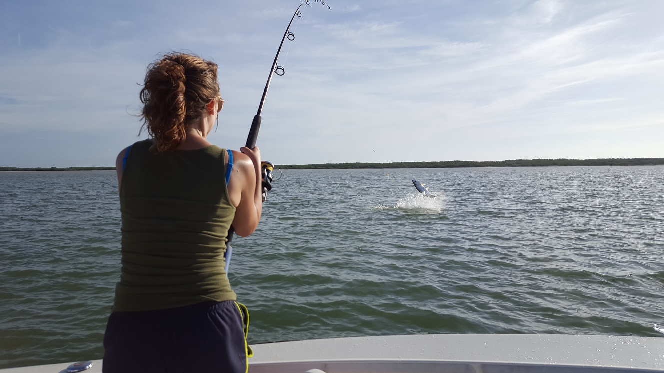 Got out for a full day today with Cory and Sarah. Found the mullet pretty good and we caught 50 or so baits in a couple throws. Nice for them to be easy for a change it’s been hard to find mullet in the mornings and that in turn means more time bait fishing and less time tarpon fishing, and sometimes tough to get any at all which means having to goto plan B! Anyways today it was easy so I was happy. We went off the beaches and found a lot of tarpon free jumping. Sharks were very bad we probably caught 2 dozen sharks but did get a couple tarpon bites, both of which we landed so that was good then finished the day up with some trout for dinner. Busy week for me I am fishing the next 6 days straight will probably be mixing it up a little but for sure fishing for tarpon some too! 2 for 2
