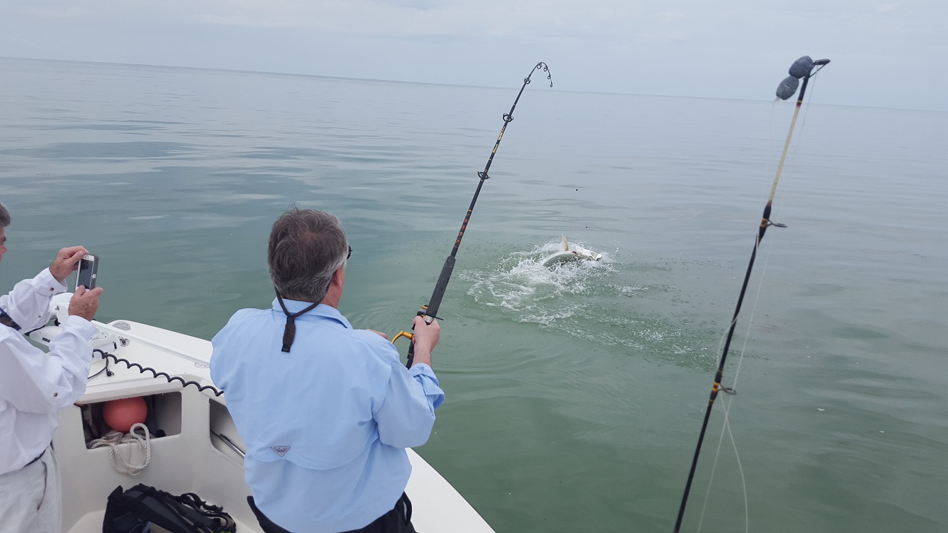 3/14/16 – Today we fished all day for tarpon. I had caught some bait the previous afternoon in the muds on the way home which were fairly productive I put away but 40 baits. We tried locally in the channels nearby where I had seen lots of fish the morning before. Today though I didn’t see much we gave it a good 30-40 minutes. I ran into the backcountry and we tried some channels back there with no luck, and eventually made our way back off the mainland beaches. There were tons of tarpon back here, free jumping and busting all over as far as you could see. They were not eating however we fished for 2 hours pretty hard and moved several times. New arrivals that just aren’t wanting to feed. Eventually we left and tried another channel on the way home and we jumped one tarpon after about 5 minutes. We then made our way back towards Islamorada and caught a dozen mullet on the way and tried the live baits in the local channels. No luck however for us. We did catch a variety of sharks throughout the day that kept us semi busy however. 0 for 1