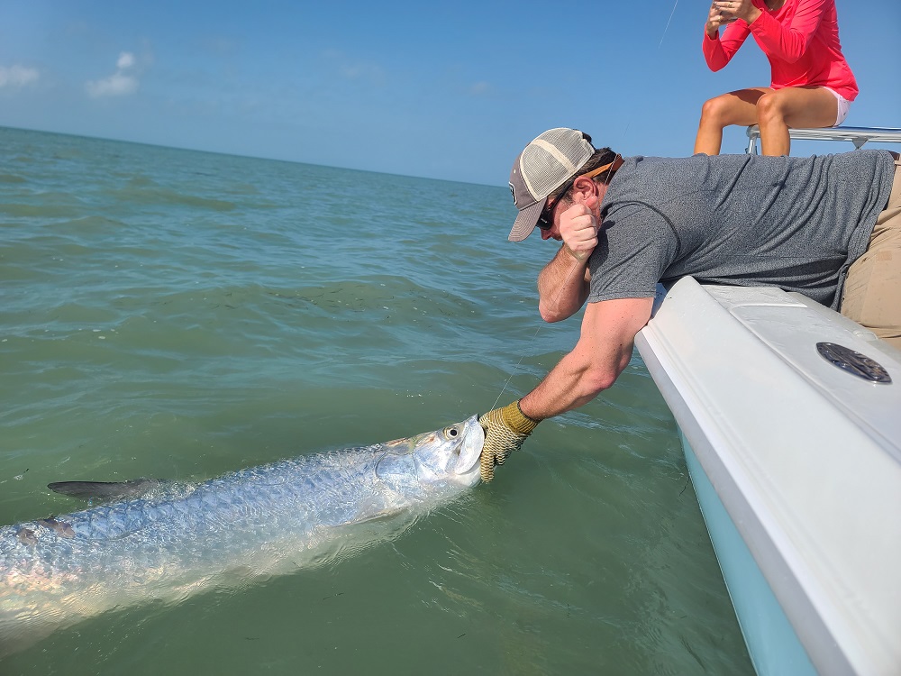 Got out with John and his daughter Kate today for a full day. Hadn’t been doing a ton of tarpon fishing this February as we’ve had a couple late cold fronts that have more or less put them off as to what it’s normally been the last few years at this time. But the last few days it warmed up nicely and the winds weren’t cranking too bad so we gave it a go. Found a good school of tarpon in the backcountry first thing and they cooperated nicely. We caught two out of three tarpon, both that we landed were large fish in the 90 to 100 lb range. After that we finished the day catching a bunch of snook and a few redfish. Things just worked out perfect! But good signs to see the tarpon back there. Unfortunately we have another cold front on the way this coming weekend. I don’t think it’s going to get terribly cold, but will probably dampen the little bit of a tarpon bite that we have going on now. But the good news with all this is hopefully this means we will have a stronger tarpon season later on – some people often feel if it gets too good too early, it can make the later part of the season a little slower. I’m just glad to be catching a few!