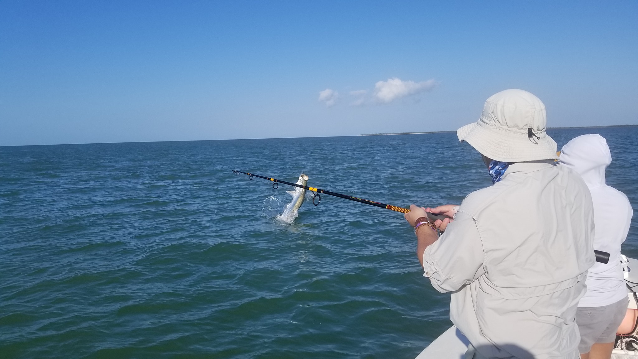Fun day with Chase and Stephanie visiting from Tennessee! Chase wanted to catch a tarpon and I told him I’d still been having some luck though it’d gotten a little tougher with the bigger ones this last week with the wind and all. So we decided to focus on some small guys. Bait was a little harder than yesterday, took an hour or so but we managed to catch enough and then headed out into the backcountry. We didn’t get much in our first stop though after 10 minutes or so though, Stephanie hooked a nice 10 lb tarpon free lining a pilchard! She reeled him to the boat after a good fight, but unfortunately he jumped and threw the hook next to the boat before we could get him up for some pictures. After that we drifted in and Chase hooked a nice snook we missed. We tried another area where we found a lot of small tarpon yesterday but did not see much there today, just a handful. So we kept moving and then found an area with a good amount of tarpon. They were fairly happy too, we drifted some baits in and had a few bust on them, then Stephanie hooked another one that jumped off right away! After that Chase got one, and this guy we did get to the boat a nice little 7 or 8 lber. After that we caught a few jacks and the tarpon seemed to slow down a little. We moved and tried a few other areas, which all had some tarpon in them but no response. We did get a big snook though for Stephanie, and Chase got a redfish and a spanish mackerel for a boat backcountry SLAM! We then decided to see if some bigger tarpon were showing offshore, and we did find a good pack. We moved in on them and had to readjust a couple times. Definitely were in the zone but unfortunately they did not want to bite for us. We hooked several big sharks, and caught a nurse, a couple big black tips, and a few others that bit us off. That was about all she wrote, not a ton of fish but some quality ones and Chase got what he was after so it was all good! Couple days off and then booked on the weekend, may go fun fishing one day if time permits to check out some other areas. 2 for 3