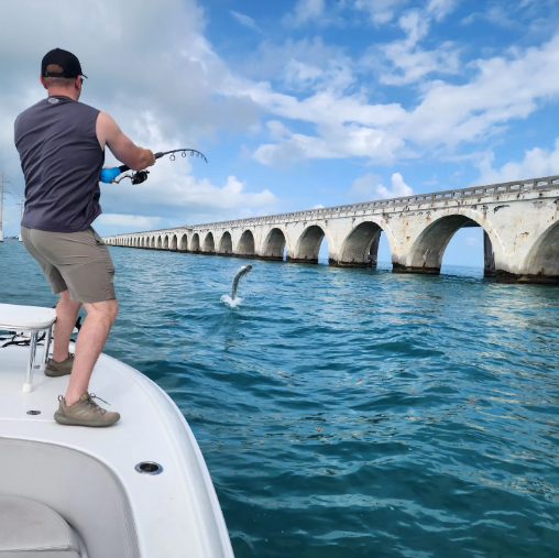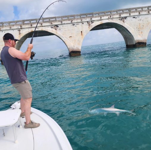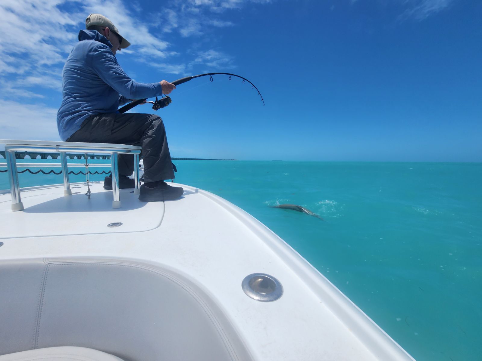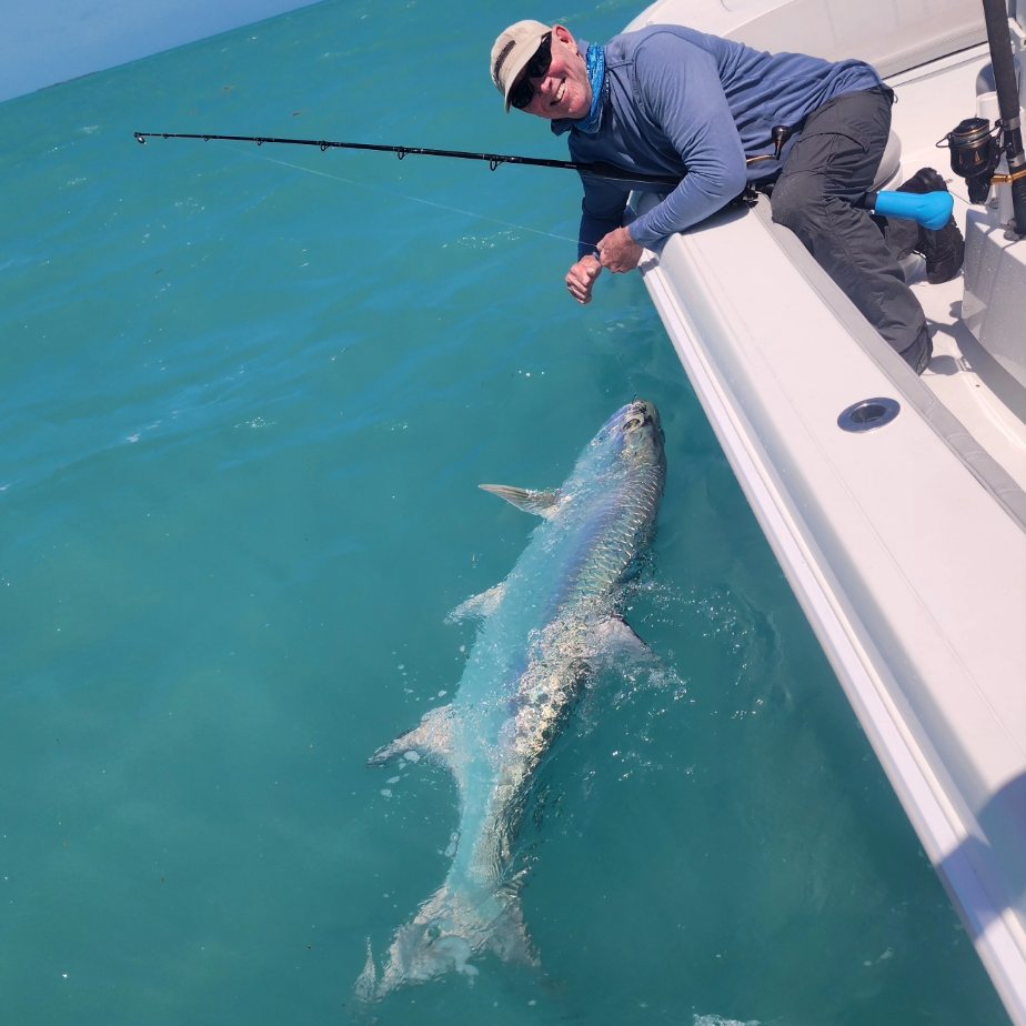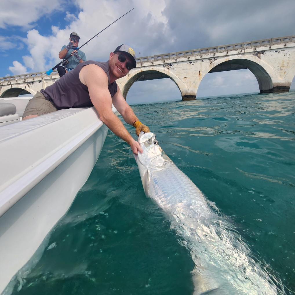 I had a busy week this week and moved some days around for one of my good clients. So instead of fishing my typical monday, tuesday, wednesday, this week was monday, wednesday, thursday, and friday. Monday I had one of my good customers Bill out and we had some tough weather. It was still blowing 25 mph which it had been over the previous weekend but hadn’t laid down. We had fairly weak tide into the wind most of the morning so we were fishing with loose line off of our bow… not much happening. Though once the tide started in we did get some action. Bill hooked a couple of big fish in the 150 lb class and we were able to get both of them up to the hand which was awesome. Though we did have a monster hammerhead about 500 lbs or more come take a look at one of the fish. He nudged it a few times but never tried to actually eat it I think the fish was too big for his liking! Lucky for us. Anyways still a great day to get two big fish and luckily Bill really knows how to pull on those fish so we caught them in ample time but those were the only 2 bites we had. By Wednesday the winds had laid down nice again to 10-15 mph. I had return customer Irv and his son Carson. We had stronger tide and I think a lot of that had to do with the wind laying down not blowing against it so hard. We had good fishing all through the day and I think we caught 5 tarpon and lost or missed a few others. Also a keeper mutton snapper, a small cobia, and a goliath grouper, among other things! Yes the ‘others’ have started to bite it seems like with May rolling around… a nice mutton snapper is always welcome! Then Thursday and Friday I had my regular customer Gerald here with some guys from his work. We tarpon fished both days and I will say the fish were just acting a lot more erratic than normal. But there was a lot of fishing pressure with a tournament going on and a couple dozen boats down there all day both days. We had good fishing I think getting 8 or 10 bites each day, but many of the fish were going through the bridges and acting super wild. We had multiple fish on our leaders through the day which we count as a ‘caught’ fish, though not necessarily what people want if they are wanting pictures and a totally subdued fish boatside. Though they just seemed to not be having any of that. Finally on the second day we did get one boatside and rolled over but as soon as we got hands on her she kicked hard and broke off. But that’s how tarpon fishing goes and getting your glory picture shot is never a guarantee! Anyways like I said we had good action both days… a little boredom at times where we’d have a stretch without much happening. But than you might get 2 or 3 bites in a row after a few quick moves. Hopefully next week things might settle down if the fishing pressure dials down a little bit. But we should be coming up on good incoming tides for the morning and the wind forecast is favorable staying light to moderate. Back at it Monday!