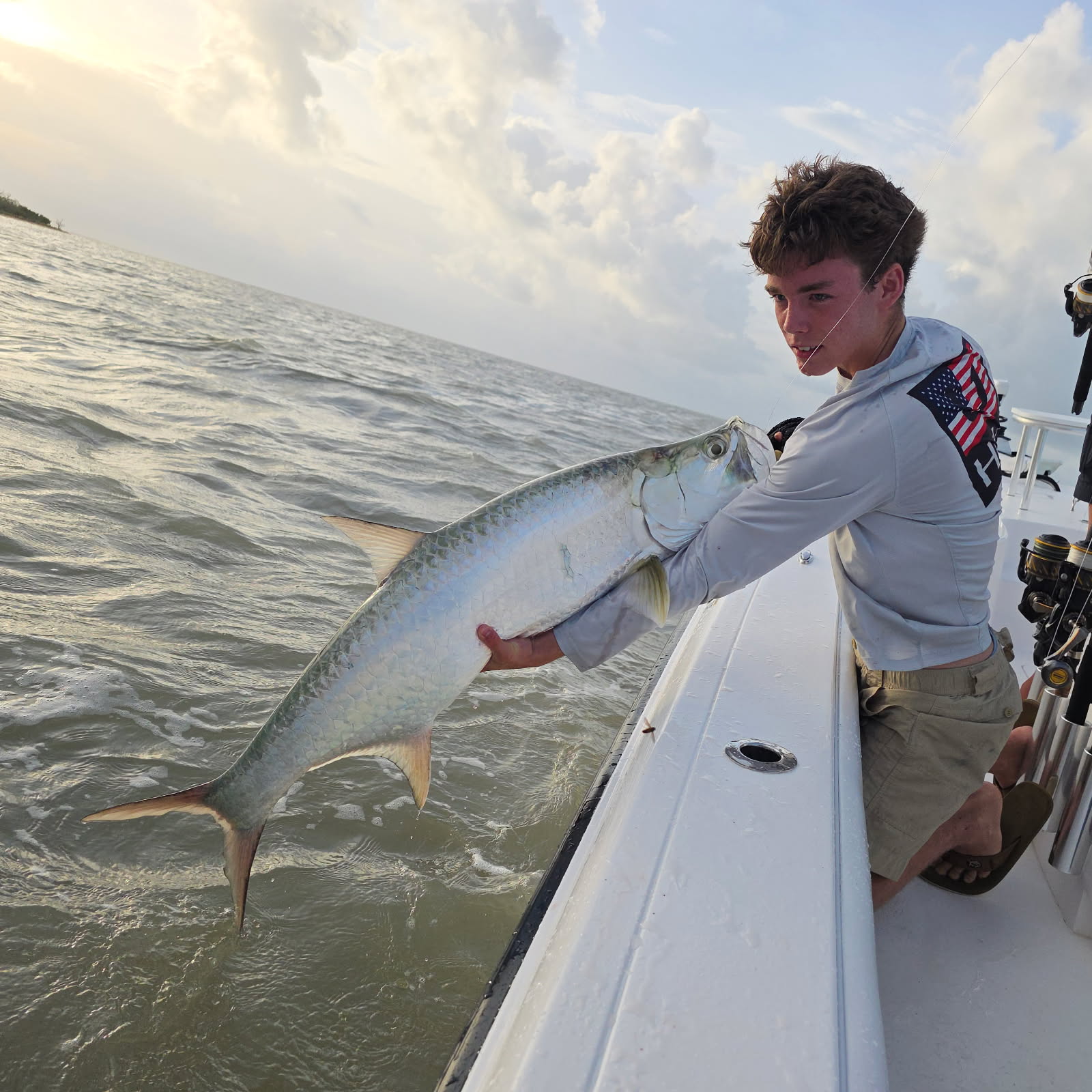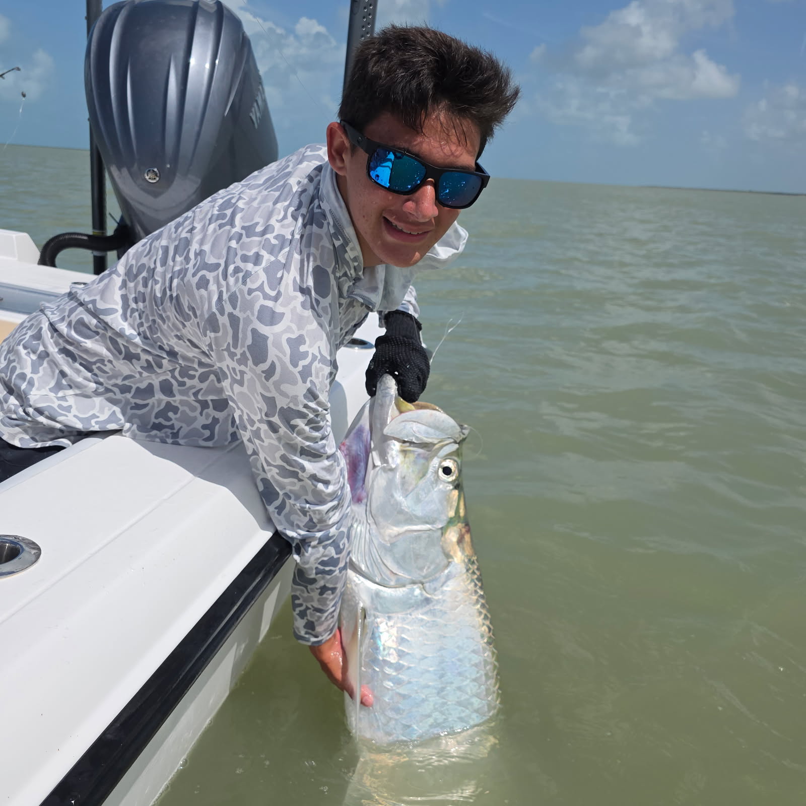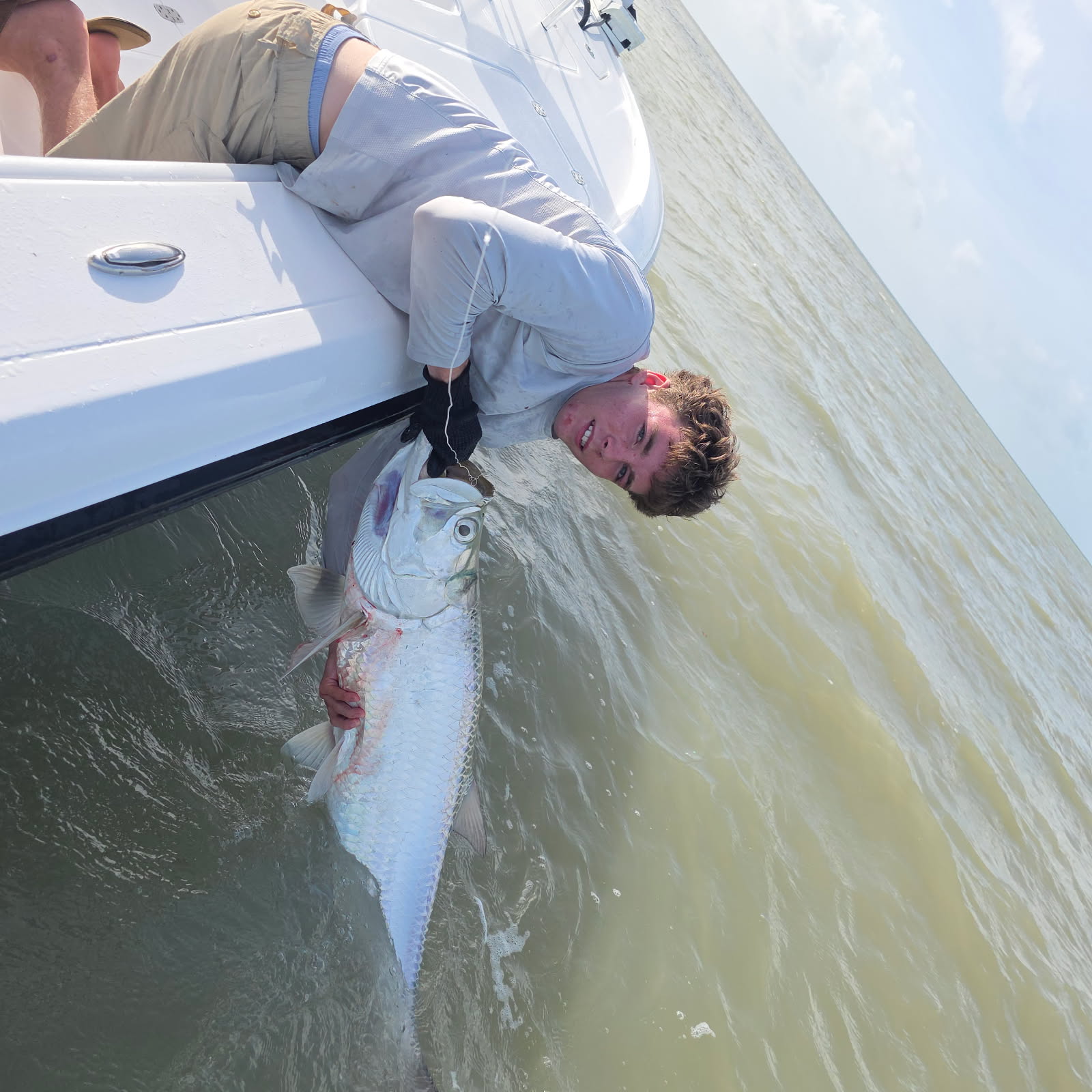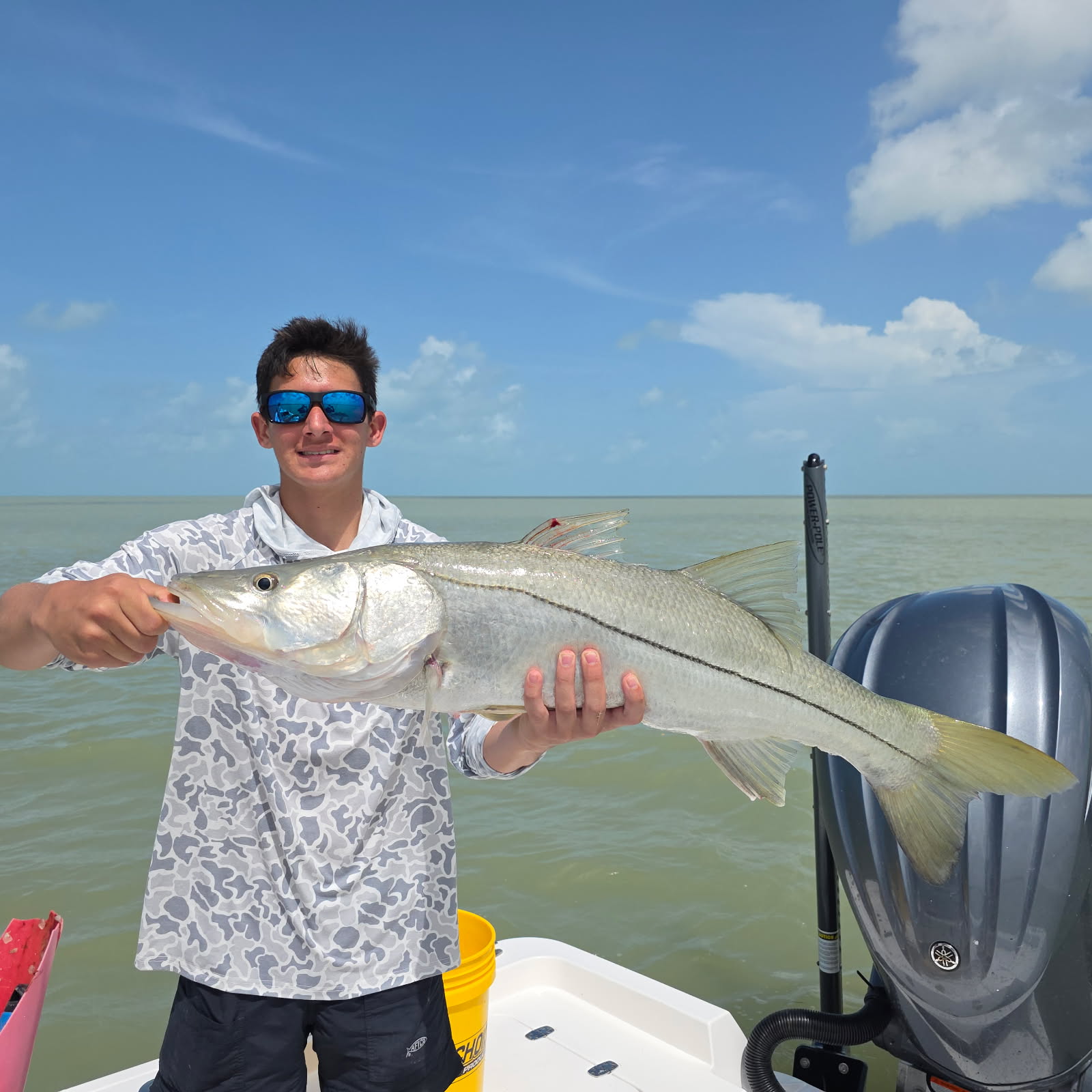 Yesterday I had Gavin and Max out. Bait was difficult to come up with but luckily Capt. Trent hooked me up as he found some mullet the afternoon before in the backcountry. We left out early and did about the same routine as I had done a few days earlier. But today the tarpon were happier! We hooked a couple after about 45 minutes of fishing in the first place we stopped. Landed one and jumped the other off while we were fighting that one. But a good catch. Then we had several large lemon sharks and a bull shark. Moved around a few times and got into another pack of tarpon a little bit later. Sure enough we near hooked another double header and landed both fish. It was high fives all around and some good picture takers. After that things settled down. I ran further up the beach and saw a few more free jumpers which we tried to get lined up on but no love. But good to see there were definitely a good number of fish out there. I ran further and fished an area where I had caught some over slot snook a few weeks back and I knew there was tarpon there too. Low and behold we ended up marking a nice pack of fish and sure enough we caught 3 snook that were all near 20 lbs! Then we got a nice 70 lb tarpon at the end too! Just a magical day where things all came together.
