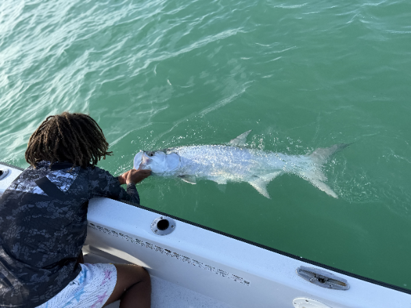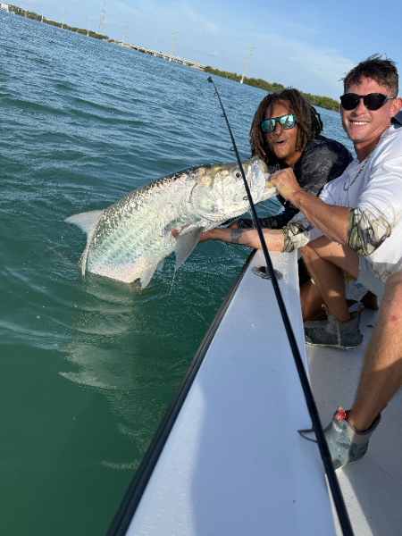 Capt. Trent has been on a tear lately with the tarpon on the evening trips! Summer time yields some great opportunities for resident fish and right now they are literally just minutes away from the dock. Very little pressure in July and August especially in that evening fishing window you’re often the only boat out there. Spawning is over and the fish are packing in calories and much less finicky as they sometimes can be months earlier. Not that that is always a guarantee but seems to be the case as of late! Also another plus is often taking the pressure of finding bait out of the equation as we are able to source bait at the dock that is available almost every day from the other boats coming in. So we had a last minute trip last night that was booked the day before. Capt. Trent got them out at 4:00 pm and they did the tarpon thing and it was game on from the get-go. All throughout the year but especially in July and August we use a ‘dead bait’ approach to catching tarpon. Usually a chunk of some kind of meat on the hook and we either drift those baits to them or set them out with a sliding sinker. We fish known areas where tarpon congregate but with the warm, calm summer waters we often are looking for them rolling on the surface or with our fish finders. So on the trip they ended up catching six tarpon and jumped off a couple more! Medium to larger size fish too in the 50 to 100 lb range. Now this fishery can be good all the way through October. If you’re thinking about it drop me an email and we can discuss.