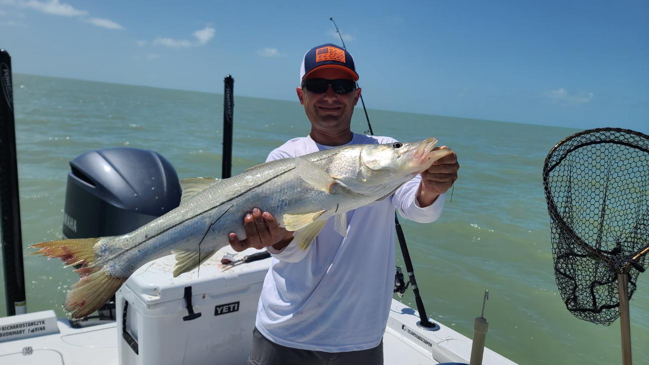 Well August is nearing it’s end here. Had a busy week last week and now September is upon us and is usually the slowest month for business here with storm season being in full swing plus school starting. But not necessarily a bad time to fish, actually quite the opposite it can often be a fantastic month for fishing! The last week here we had pretty good fishing. The first couple days we did not really focus on tarpon but did happen to catch several. 3 small juveniles while snook fishing on Monday, and then Tuesday we caught 3 as well one juvenile, then a couple larger ones one on a pinfish and one on a mullet – funny 3 different baits and all produced tarpon (the first one ate pilchards which we were using for snook). Then Thursday we focused on tarpon the whole morning with the bigger rods and actually wasn’t quite as easy – sometimes it feels like when you go all in one them its hard, and when you are just not so focused on them sometimes they come easier! But we did have a couple bites and jumped off a large 100 lber, and at the end of the trip caught a nice 40-50 lber. But so it goes and needless to say there are tarpon still around here in the Islamorada area. A few reports from today I heard said that a few new groups of fish were out & about, so maybe this bodes well for September! Anyways as I said I am not super busy so if you are wanting to come down & fish I’ll likely have days available with shorter notice here for the next month or so. And I’ll shoot you straight if fishing seems like it’s not going to be good, I’m just as happy to stay home too! So drop me a line and make sure to sign up to my mailing list for when I open up my bookings for 2022, they’ll likely fill up fast.