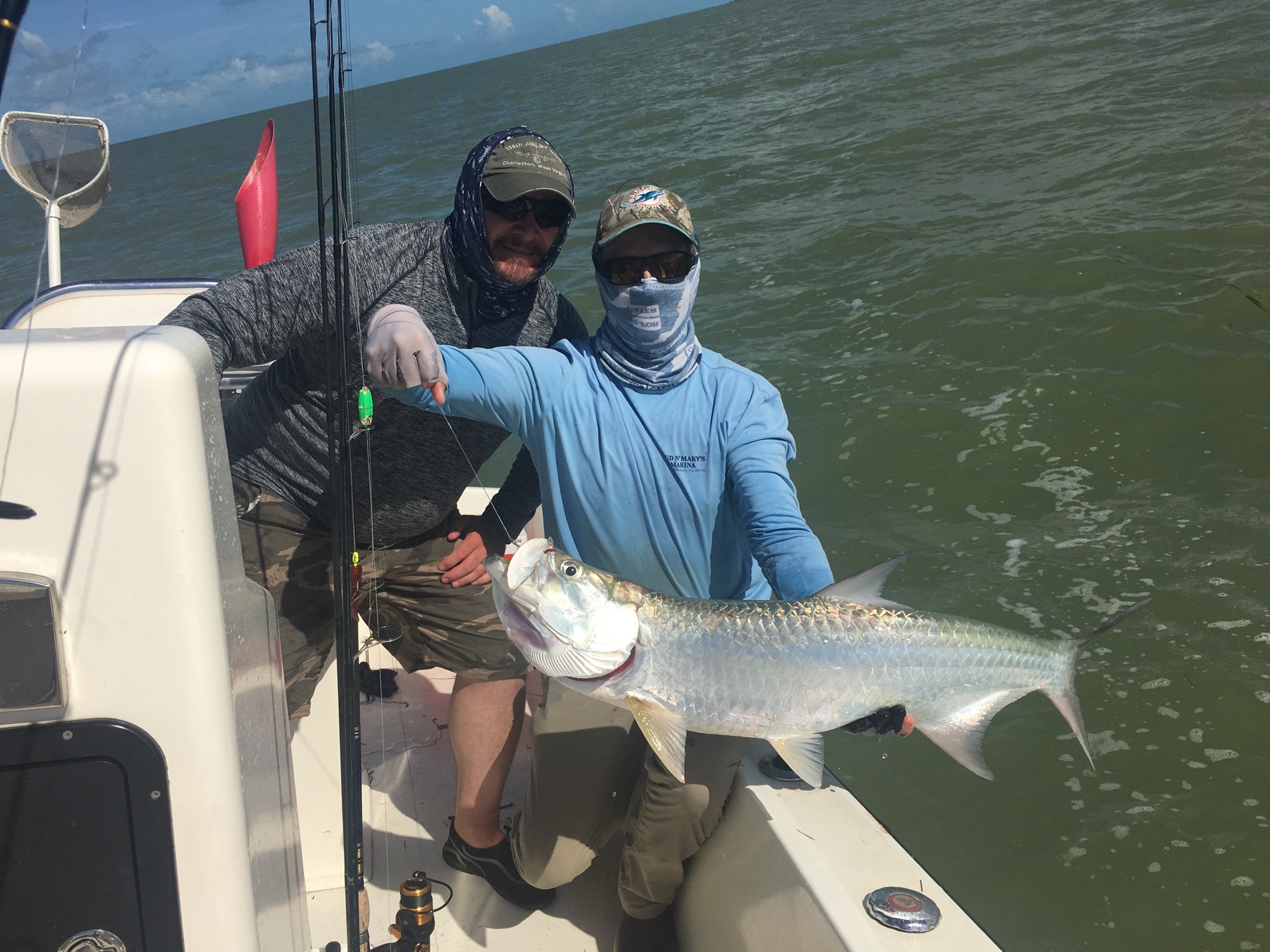 P.S. We normally do not lift tarpon out of the water, however if they are under 40 inches you are still allowed to (carefully). We just make sure not to handle them too much and take them out quickly for a picture and release them. We are not letting them flop around on the boat much, not wiping too much slime off, and not hanging them by their gills for long but supporting their belly (as you should with all fish you don’t plan on killing).