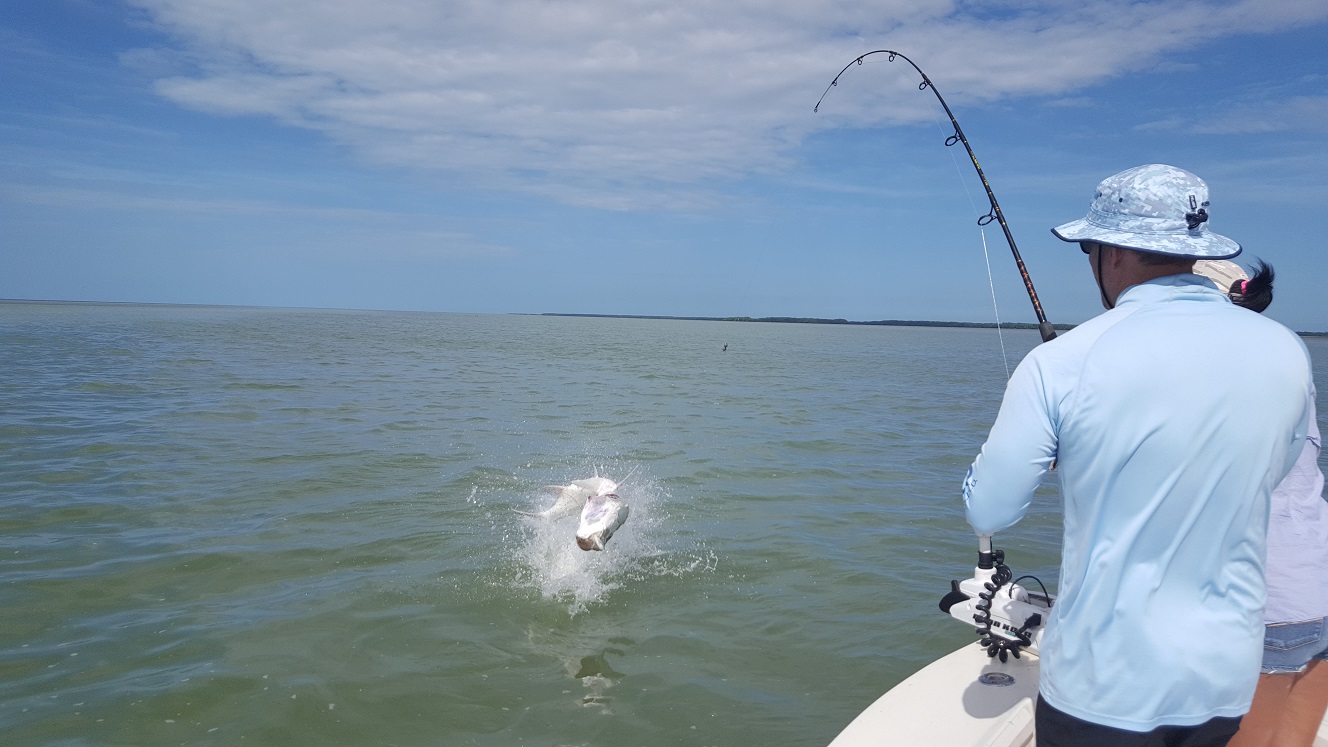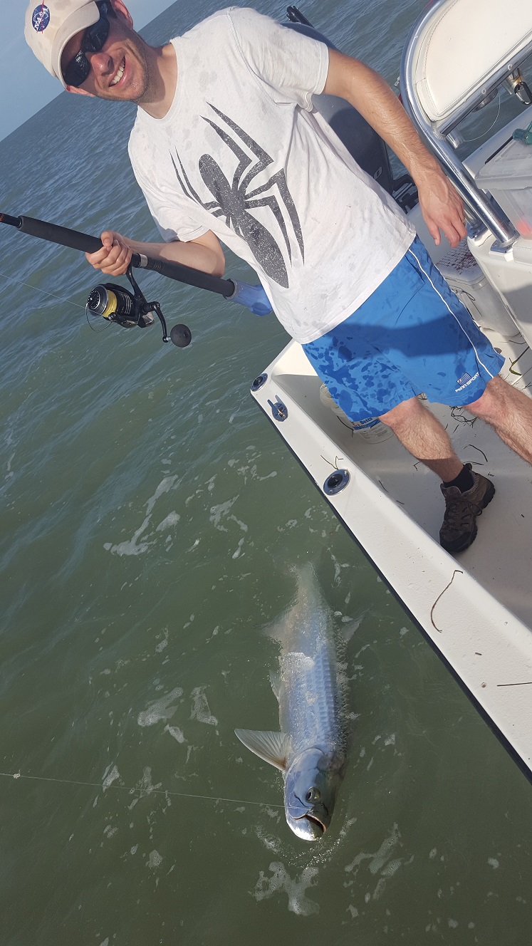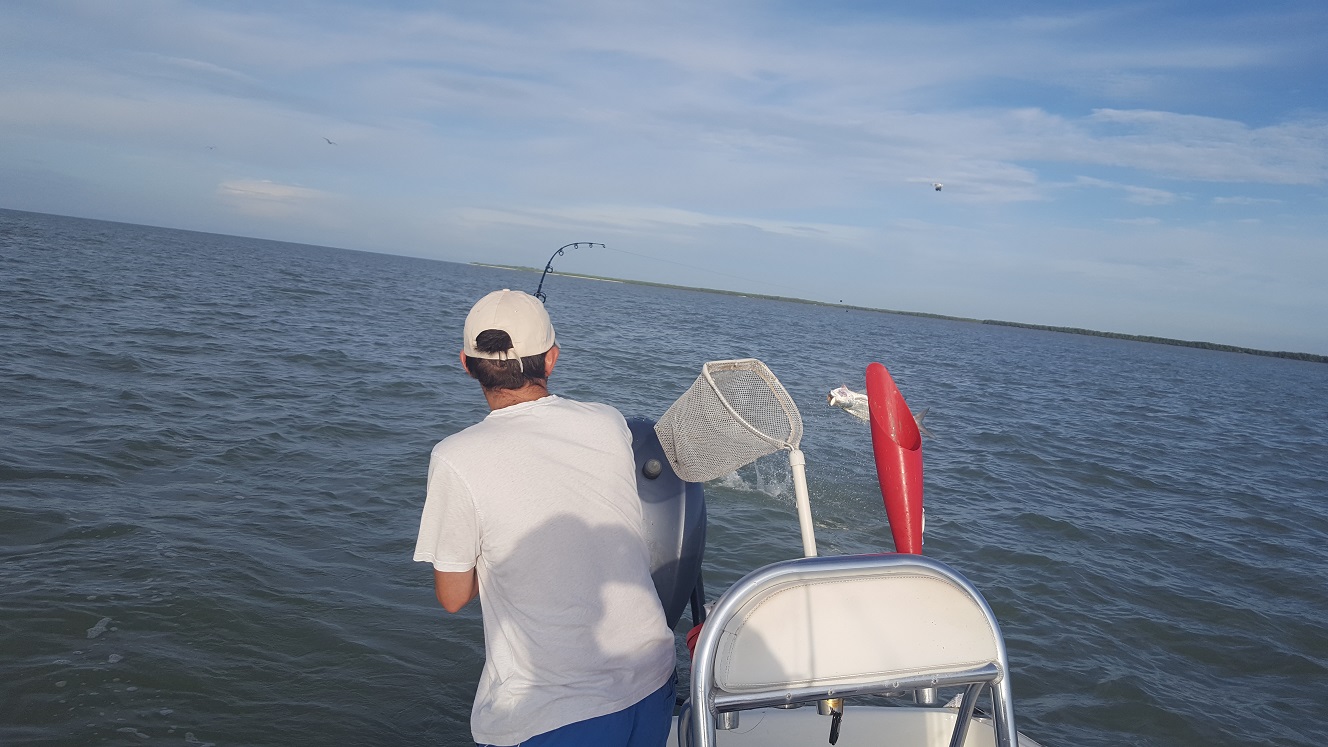 Another great day I had Chris over from the UK. We caught plenty of mullet in the morning and headed to the tarpon grounds. The fish were swarming and happy. We had I think around 10 bites on the day, and by 10:00 AM had landed 5 fish it was incredible. We ended up catching a few snook and tripletail later on to mix it up, and even in the last half hour we stopped to throw some artificials and hooked a tarpon while doing that on accident! They just didn’t want to leave us alone. Anyways a fantastic day, if you are down here this month and want to fish for tarpon get in touch with me. 5 for 10