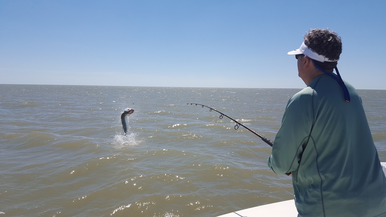 3/5/16 Today we did a similar plan as yesterday. Mackerel and tripletail in the morning followed by fishing the big rods out back again. I tried a different area for the big rods and we found some various sharks – bulls, lemons, and blacktips. In the distance I could see some busting and rolling tarpon, so after an hour we moved out in that zone. We had to move around a couple times, but eventually we got in front of some happy fish and had a couple tarpon bites within 10 minutes of each other. Unfortunately neither fish stayed on the hook for us, we caught a few more sharks. We moved around again and we were able to hook and land a nice 50 lb tarpon plus a few more sharks. After that the wind switched to due west and the tide slacked, which was kind of the end of our day. But happy to get a nice poon! 1 for 3