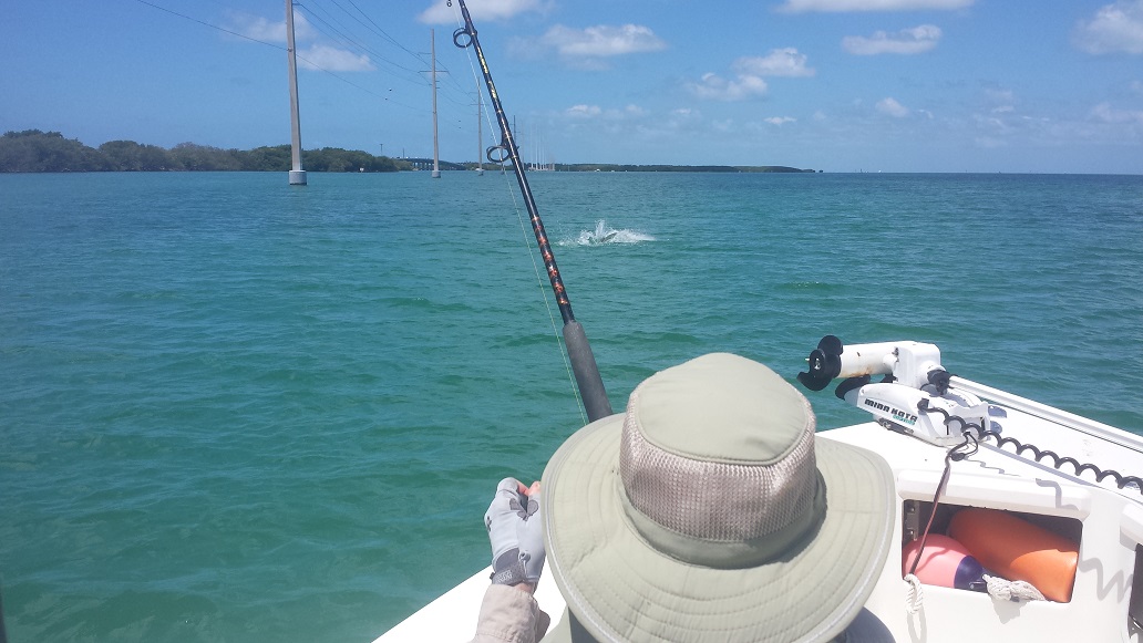 Today we had an extended half day tarpon trip and stayed local around Islamorada. I haven’t fished locally in a week or so, we had a big group for 5 days and I mostly stuck to the everglades as there is a lot more bycatch (sharks, etc…) which those guys enjoy, plus we had a handful of shots at tarpon. Anyways this morning bait was decent we were able to get 3 dozen to fish with. Had good incoming tide for several hours this morning. Some fish around the bridges down the road, though the weed was tough to fish around. We finally found one area where it wasn’t too bad and were able to hook a fish soon after that we landed. After we got back, another 15 minutes later we had a fish up that ate, but unfortunately my anglers had sat the rod in the rod holder and by the time we grabbed it the fish was gone. After that we looked around tight to the bridges as the tide was slowing. Did not see a whole lot their either, though we found a handful of small fish. We did get some good action out of them, about 6 ‘cheap shots’ where they busted the mullets but did not eat. It was entertaining. After that we ran back close to home to catch the good falling tide, however did not see much for fish in the few areas we checked and decided to come in on the 3/4 day. 0 for 0 1 for 2