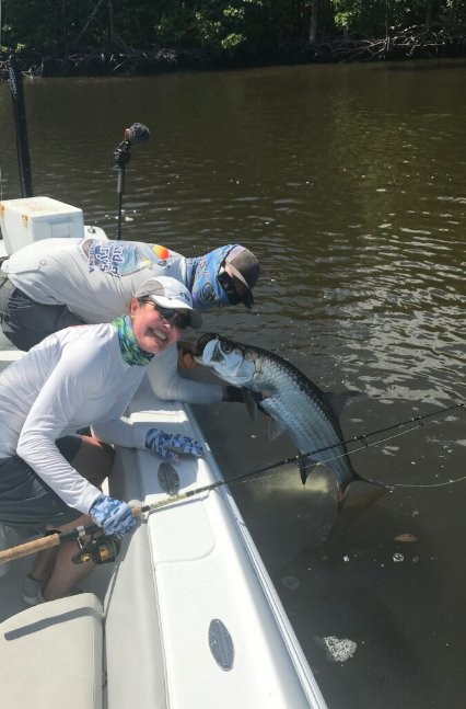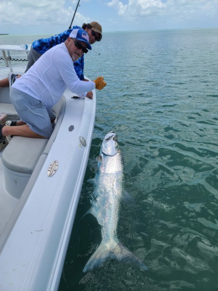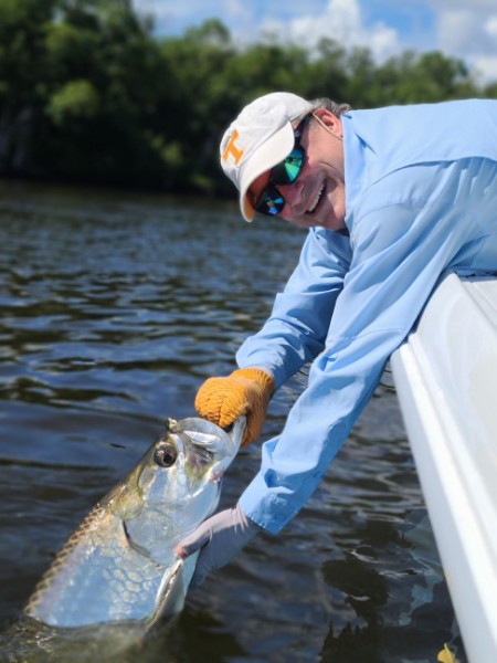 Well a few days ago the wind kicked up southwest for a couple days and the tarpon fishing seemed to go from full throttle to having to invest a lot of time for just a bite or two. But that’s fishing! Luckily we’ve still managed to catch a tarpon every day despite the change, and we even had some banner fishing deep in the everglades on a couple days as well. I had Charles and his son Wes for two days, we stuck around the bridge on Day 1 and had 3 tarpon bites in the first half of the day and kept one on the hook that we got in for pictures, plus we got a nice mutton snapper for dinner. We finished that day in the backcountry catching some trout. Day 2 with them we took a gamble and ran deep into the ‘glades where I had some good tarpon fishing at this time last year. It paid off big and we had I think a dozen bites, getting 5 tarpon on the leader and one up for pictures. Yesterday I had Mark and his friend Joy, we didn’t spend a ton of time tarpon fishing we had a good day with redfish, snook, and trout, but we finished up the the last hour of the day around town and we caught some sharks, a sawfish, and in the last few minutes got a nice 90 lb tarpon! And today I had my regulars Pride and Cile, we went deep into the ‘glades again and found a bunch of tarpon in one of the same areas. We landed two and missed 4 or 5 others, and then mixed it up with some other stuff as well. So that’s the game right now and things may turn on again here soon locally, but for me I’m probably sticking in the backcountry for the most part from here on out. The regular backcountry areas should start filling back up with tarpon once the spawning is over in a couple more weeks here.