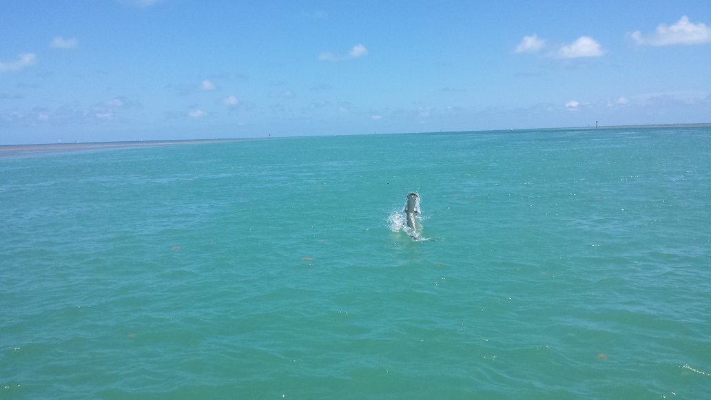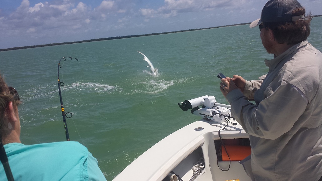Today we ran in the backcountry in the morning. Did some light tackle stuff, then we came across a nice school of mullet and were able to catch a couple dozen. I tried some of the backcountry channels and off the mainland shoreline, though not much for tarpon going on there but we did catch several sharks. We finished up around town again with the last of the outgoing tide, very low water and hot – 90 degrees on my temp gauge! We had 3 bites and landed one nice fish of 100 lbs that screams off probably close to 300 yards of line. We gave chase and after he slowed down it wasn’t a long battle, I think the long run in the hot water did him in! Tomorrow I have a morning half day tarpon trip and an evening trip, hopefully it is good!