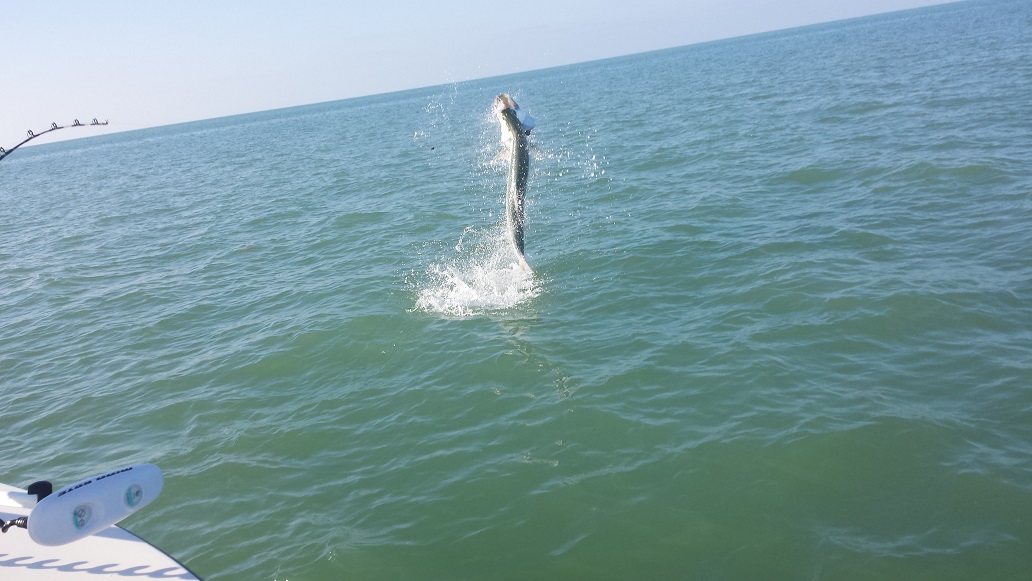 The tarpon season rolls on. Today was flat calm and the water had a chance to warm up a few more degrees. It was 77.5 in the backcountry where I’ve been fishing which is much better than 73. A few degrees makes a big difference in the attitude of the fish. We had falling tide all morning where I tarpon fished and we caught bait first thing a little further east where the tide was still coming in. The mullet were thick as they have been the last several days with that condition. We went 1 for 4 on tarpon within an hour and a half, also catching a couple hammer heads, black tip sharks, and big nurse sharks. By 10:00 the bite slowed up and we weren’t seeing near the number of fish rolling which that often happens that time of day. However we kept at it and we finally had another tarpon on by 11:15 or so. Good fight and multiple jumps. So 2 out of 5 tarpon overall. Both nice fish in the 80-100 lb range. We are suppose to get another minor cold front next week on wednesday. We will see what happens, may slow down the tarpon a little bit but I don’t think it will for long. Overall will probably be a good thing as we generally don’t want the fishing to get too good too early as that often leaves May and June much tougher!