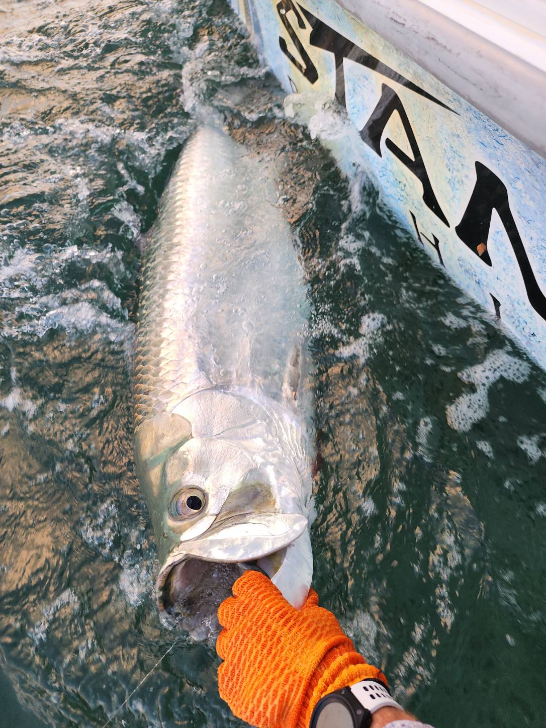 Well we had some major weather the last couple of days and had to move some trips around but luckily I’m able to do that these days with fishing less. So we ended up fishing Sunday evening on the 9th as I was booked Monday, and Tuesday/wednesday were kind of blowouts with major rain and 25 knot winds. Sunday honestly conditions looked OK we had a bit of a northwest breeze and prefrontal feeling with the tide ripping out. That kind of made it a little difficult to fish with all the seaweed and watch swooshing by pretty quick. But it was fishable and we found some fish around the bridges but we never had a bite! Worked really hard at it too and fished till dark but the tarpon just weren’t having it. Not the numbers of fish that were around last week either I dunno if a lot of them moved out feeling the weather change or what but it was tough. First trip in a while that I can remember not even having a bite especially in April.