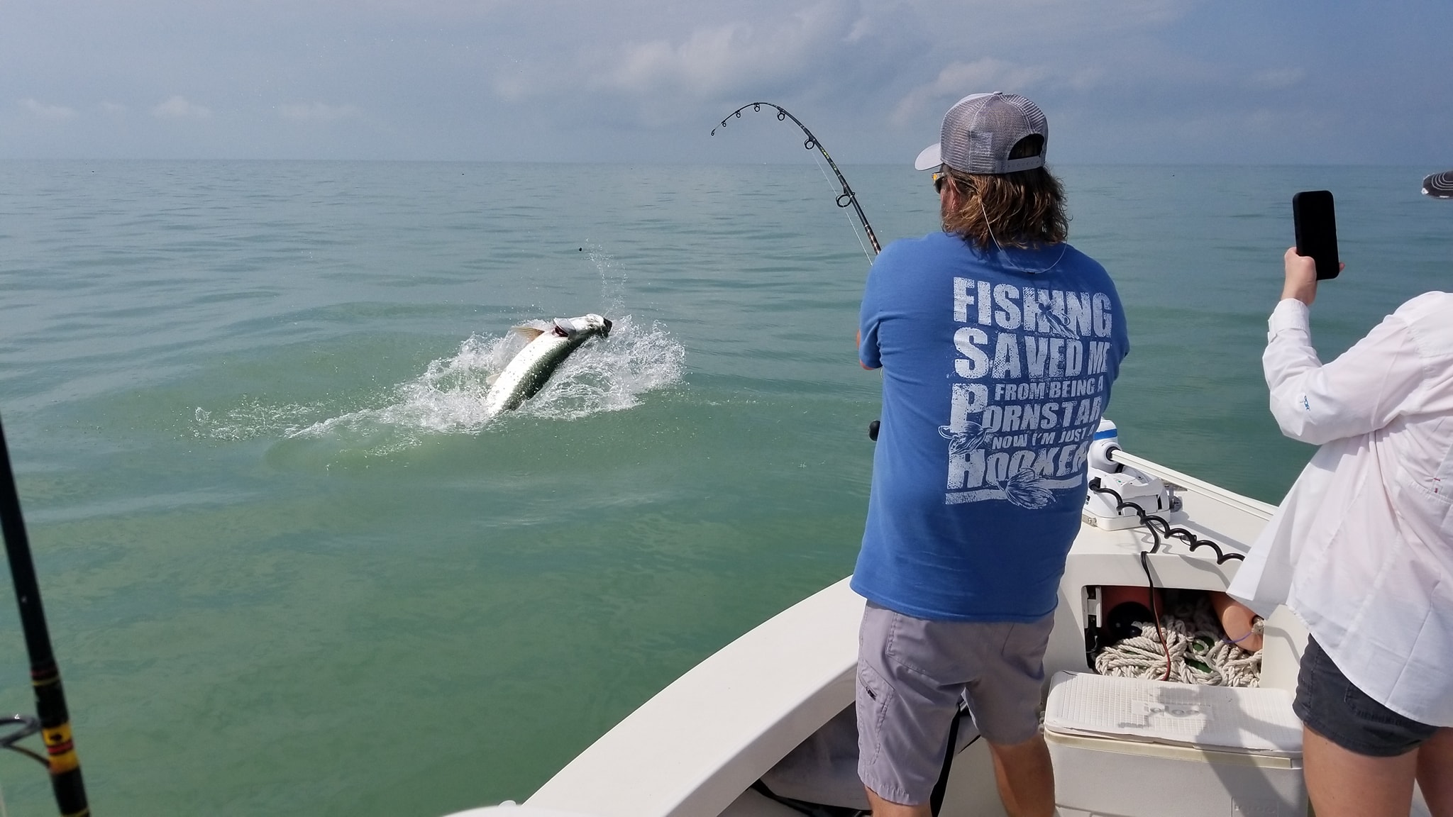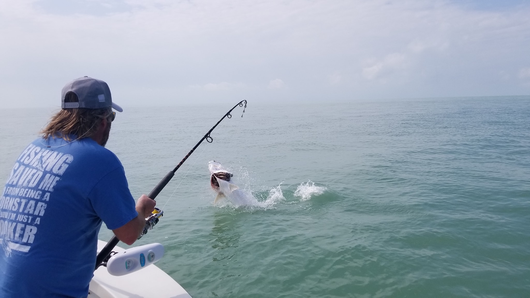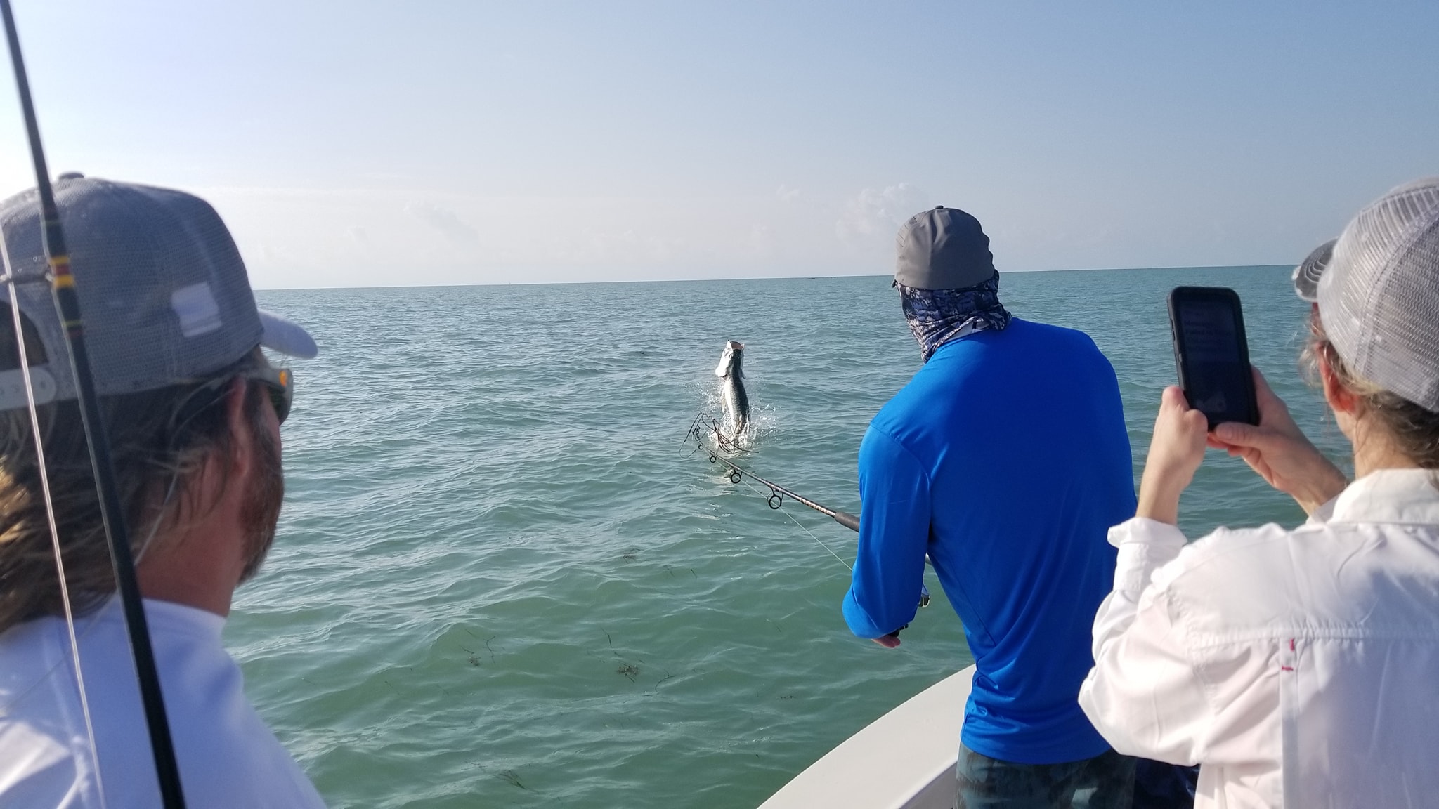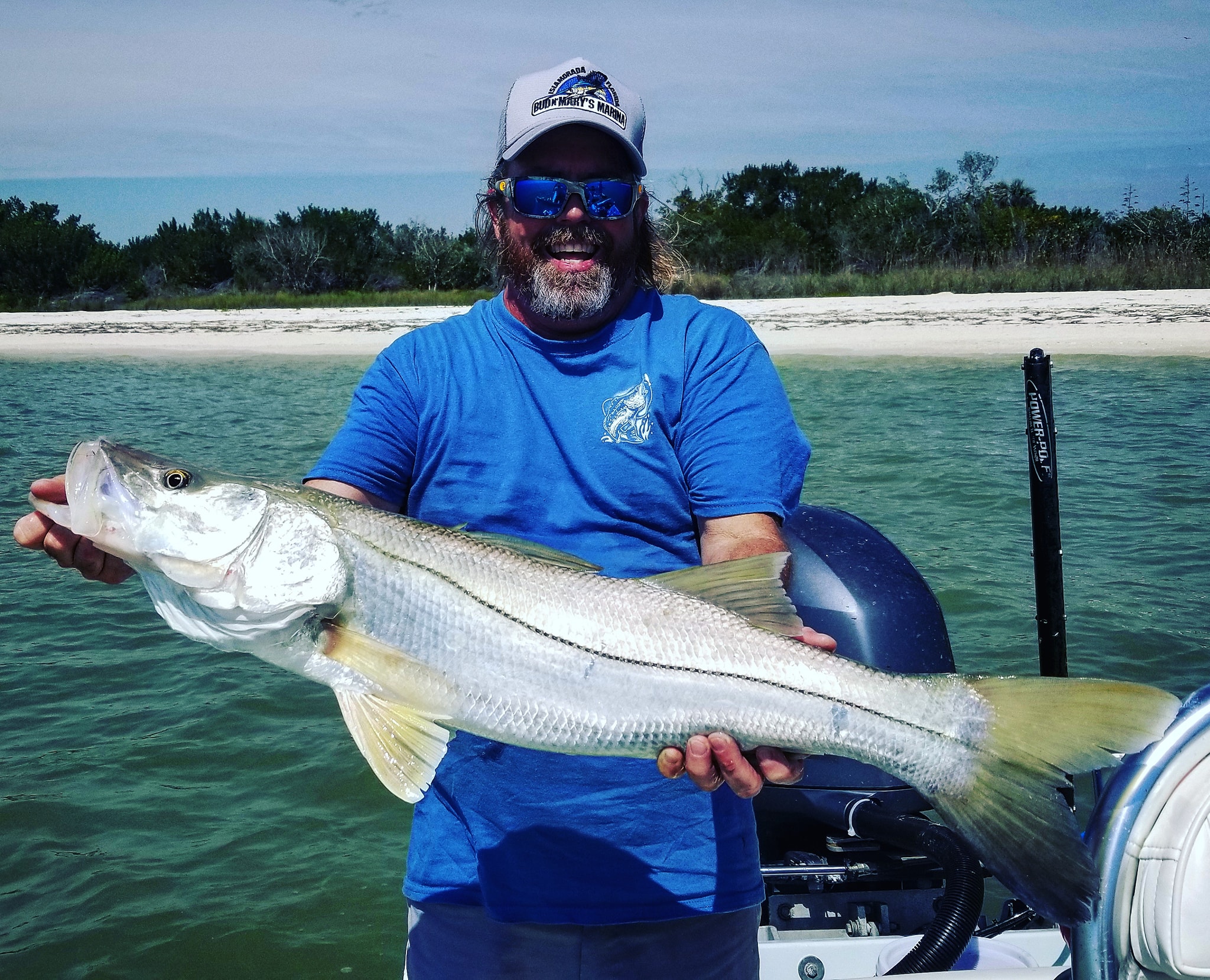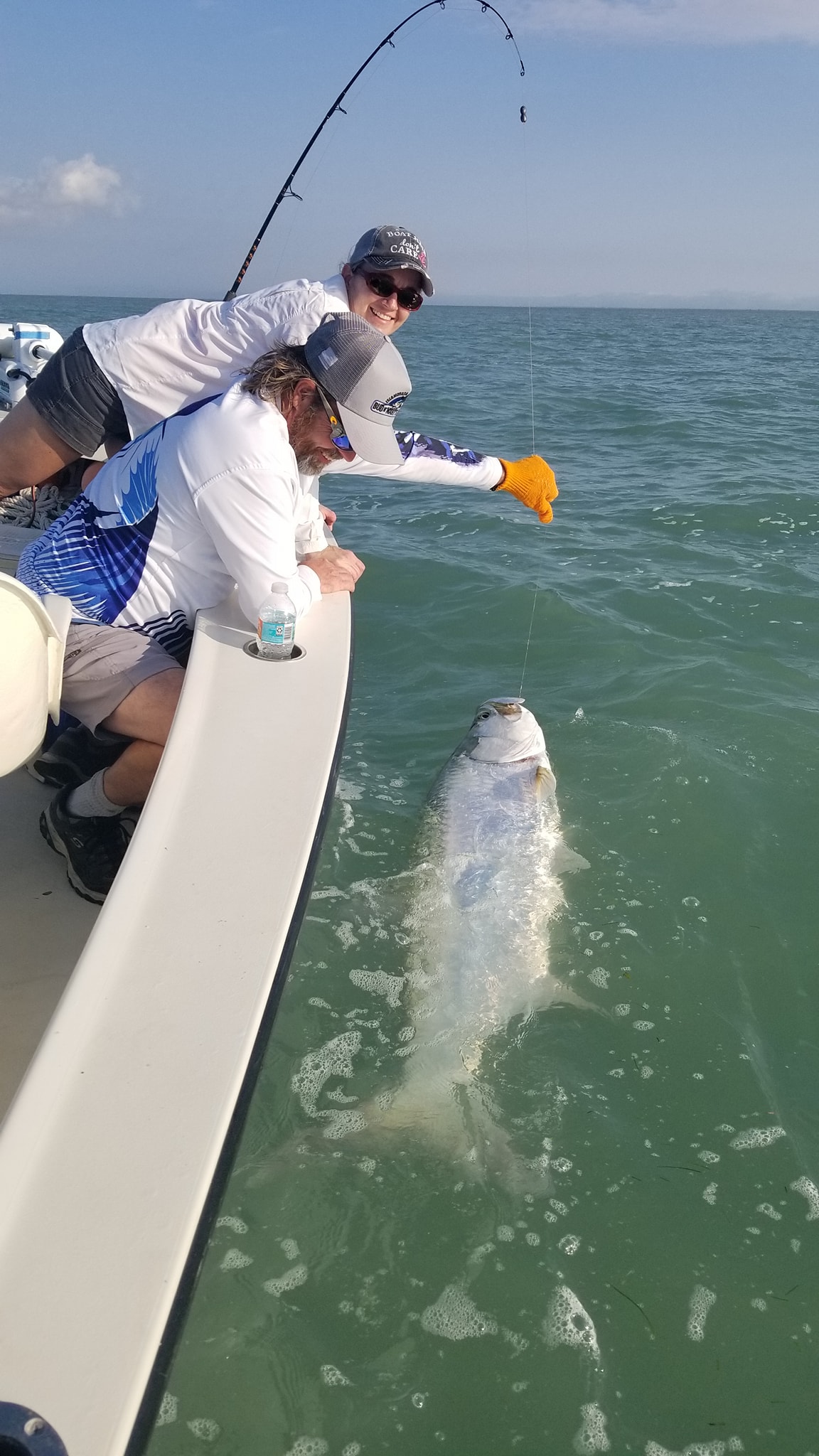 Another day on 🔥 🔥 🔥 for Curtis, Mike, and Connie. They wanted tarpon and we were suppose to fish tomorrow, but with an impending cold front tonight I thought it might be tough duty. Luckily I had today open and we switched days, as today was nice and calm, ideal tarpon condition. We found some fish early and Connie and Mike each caught a nice one. Connie’s was about an 85 lber, and Mike’s was a good 140… Big fat girthy fish! After that we kept moving and found some more tarpon on the incoming tide. Curtis was up and we didn’t get anything on the first stop, but after a move we got lined up right and within 5 minutes he hooked a slob 175 lber! He fought her well and we got her to the boat within 20 minutes. Just a beast of a fish my biggest yet this year. We caught a few tripletails after that. Then Curtis asked about snook. I said we could give it a try I had a few live shrimp. To be honest I thought we may get lucky and catch a little one or too, but we ended up finding a couple hoss fish! He bagged two one 33 incher and one 34, a good 14 and 15 lbs or so. What a way to end the day! Headed on home after that. Winds are gonna kick tonight and it’s suppose to drop to 60 the next couple nights. I’m off tomorrow and then suppose to fish Thursday, and then a couple more off days. Rarely does it work out so perfectly that I avoid the bad condition days normally my days off I wanna be out there! Anyways, might be slow fishing in the backcountry the next couple days definitely a time to listen to your guides recommendation… but hopefully after the weekend things will warm back up and maybe the tarpon will be happier again. 3 for 3