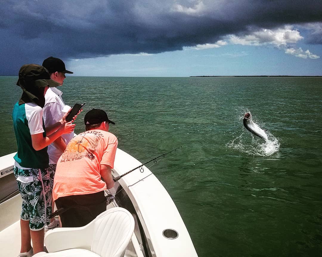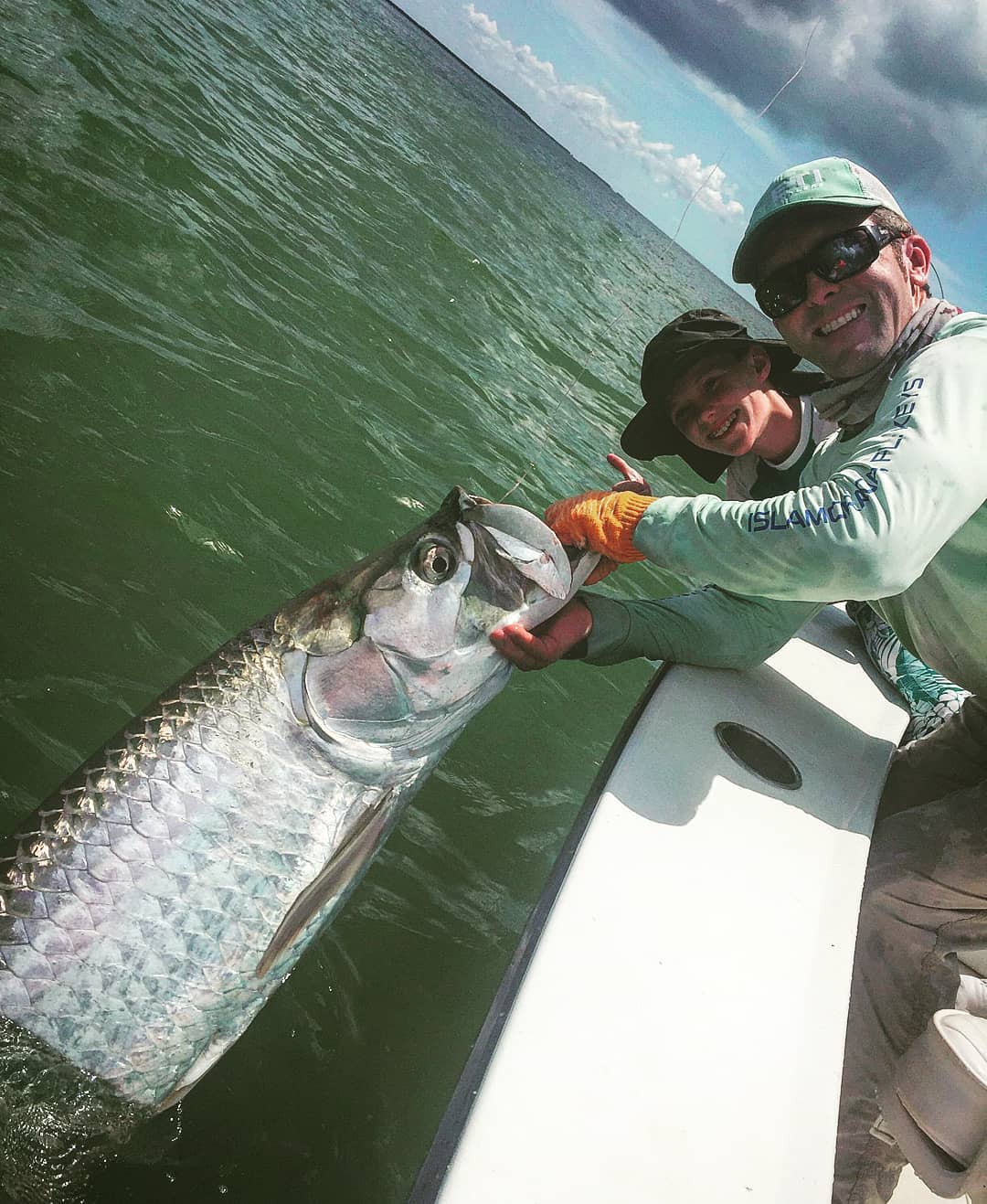 Got out with John, Jude, and Jim today three youngsters from Texas. It was a group trip and their uncle and his boys were on the other boat. It was a marina booking so I hadn’t talked to the crew beforehand but they were not up for going early as is my usual routine this time of year. They wanted to have action with whatever and hoped to maybe catch a tarpon. So I said no problem for the more serious anglers the early start is always what I recommend now but luckily I had some leftover bait so I said we’d have a shot anyways. We bent the little rod to start and that was good action with trout, snapper, and ladyfish. Then we tried a channel for tarpon. Didn’t see much to start but did catch a couple sharks. Then some fish popped up and we moved in on them. We put a little time in and then jumped one tarpon, then we hooked and landed a nice 25 lber! After that they seemed to disappear. I was happy though we put it together even with the late start. We tried a spot for some cobias after that in the gulf with no luck. Then we were going to catch some bigger sharks and caught a tripletail. In the shark area though we found a ton of tarpon! I had not seen tarpon here in this spot like this in a couple years so it was great to see. Larger size fish and lots of them. We slide in and soon after we jumped another tarpon, then we caught a nice 80 lber! After that the fish seemed to move around a little, but they settled back in and about 45 minutes later we caught another on the change of the tide! So all three boys landed a tarpon – just great! We caught a few more blacktip sharks and then called it a day. We definitely lucked out and thankfully I had enough leftover bait to make it happen. But the big deal about leaving early a lot of times is catching bait – there isn’t anyone to buy it from and sometimes if you aren’t out there at daybreak, you ain’t gonna catch it! I’m off tomorrow for my birthday and then back at it on the 5th. Hopefully some of these fish stick around! 3 for 5