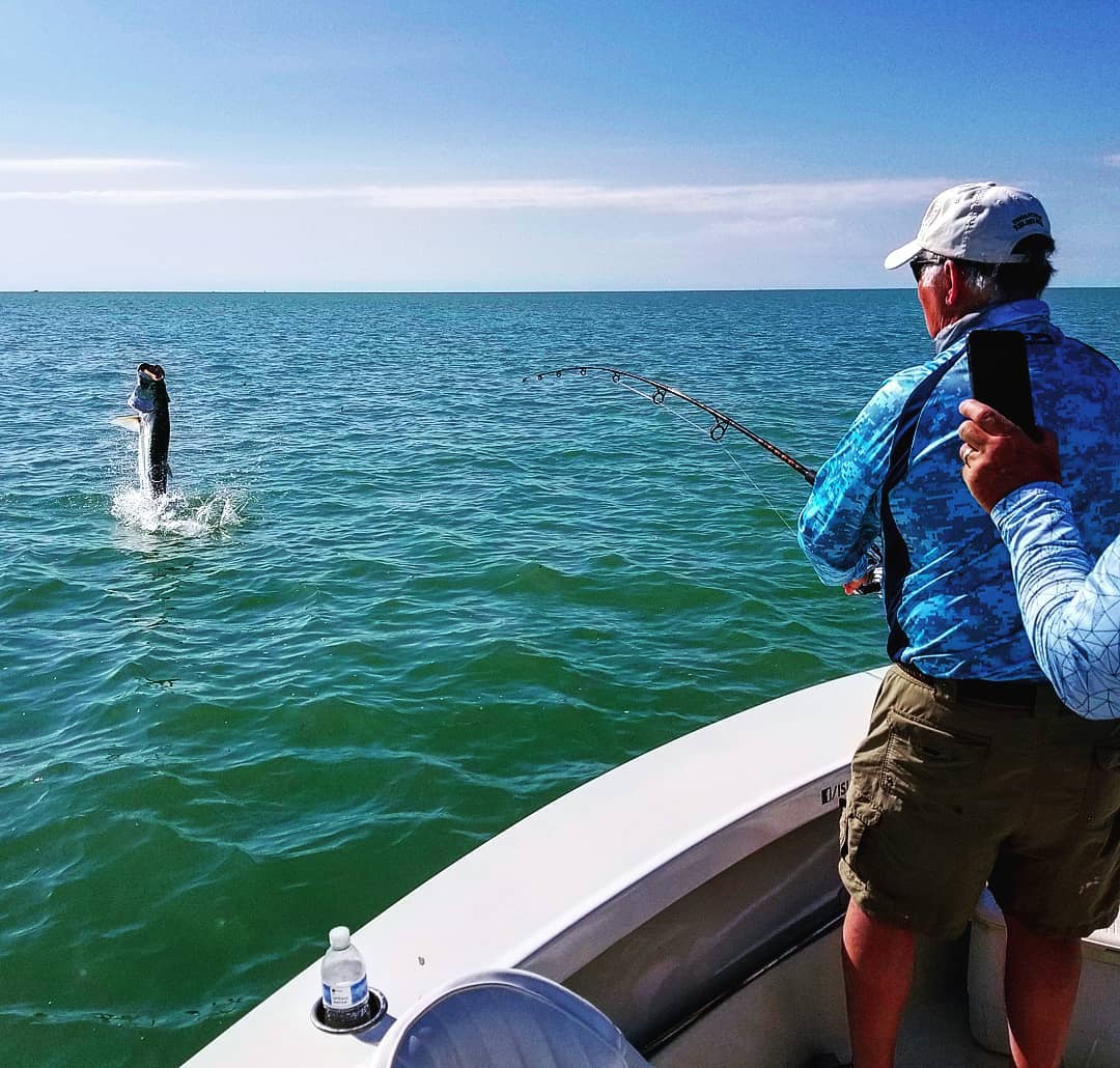 Got out with return customer Bill and his dad Bill down from Pittsburgh. We got out early and after some tarpon. Found a good new school in an area which was great to see. Good numbers of fish all fresh and happy looking. We had dead tide when we got there but after a little bit of time we still managed a bite and Bill Sr. caught a big 130 lb tarpon! Great fight and nice jumps. The tide got rolling and we jumped one more right away then had a bunch of sharks. We moved around a bit and then Bill Jr. got a nice 50 lb tarpon. We ended up with two more tarpon in the 80 and 100 lb range, just great fishing! We finished our day catching a couple triple tails to eat and a few trout as well. I’m off tomorrow and back at it Saturday. Looks like the weekend weather will be fantastic and suppose to stay calm. But then on Monday the wind machine is cranking up a bit and it’s going to blow 15-20 all week so it says right now. But at least it’s a good direction north east. Hopefully the tarpon will stay happy I think they will as we are in prime time now. 4 for 5