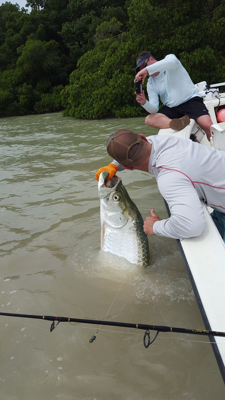Had a full day today with Paul and his brother they also had me booked for tomorrow. Fishing was tough today we found tarpon everywhere we went but they were not responding well. Lots of fish in the morning but no love at all, tried several places and we had one boil on a bait that was it. Mid day we ran down towards the marathon bridges to fish and we did hook a nice fish by the bridge but the hook broke and we lost him. We caught some big mangrove snappers and a couple groupers which was cool. After that in the bay we found some tarpon and had a flash on a bait, but the fish didn’t eat. I told the guys maybe instead of going tomorrow we could go later this evening so we ended up doing that going at 6 PM. Fishing was good we caught a nice fish in the first hour then when the tide started falling and it got dark it got very good. We had a tarpon bite on each drift fishing our crabs and landed 2 out of 3 more fish, including a 110 lb for Paul. So overall a good day had to work hard at it but felt good to put them on fish. Tomorrow I have off now but may fish a trip late tomorrow night. 0 for 1 and 3 for 4