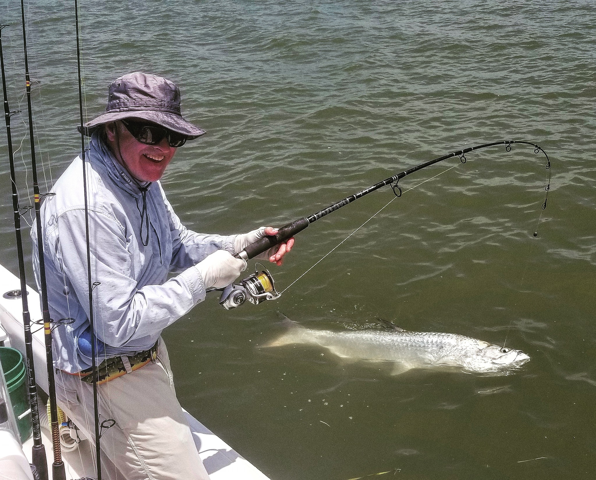 6/10/19 – Well we got lucky late in the afternoon yesterday the bait showed up and I drove back to the marina and was able to catch a good bit with a throw of the cast net. So today we did get to try a bit more for tarpon. We started with snook and redfish which was very good we had probably 40 reds and 15 snook, including a couple big snook on our pinfish. The rain finally cleared and we decided to run further and check an area where we did good with tarpon last week. We found a good load of them, and middle of the day we ended up catching 5 tarpon and jumped 5 more! Incredible fishing for just a short hour and a half window. We caught 2 double headers, and another single and we had 3 other bites while fighting that one we missed – just awesome! Was able to round a few more baits up this afternoon too, so we’re in better shape on that front. May give them a try again tomorrow. 5 for 10