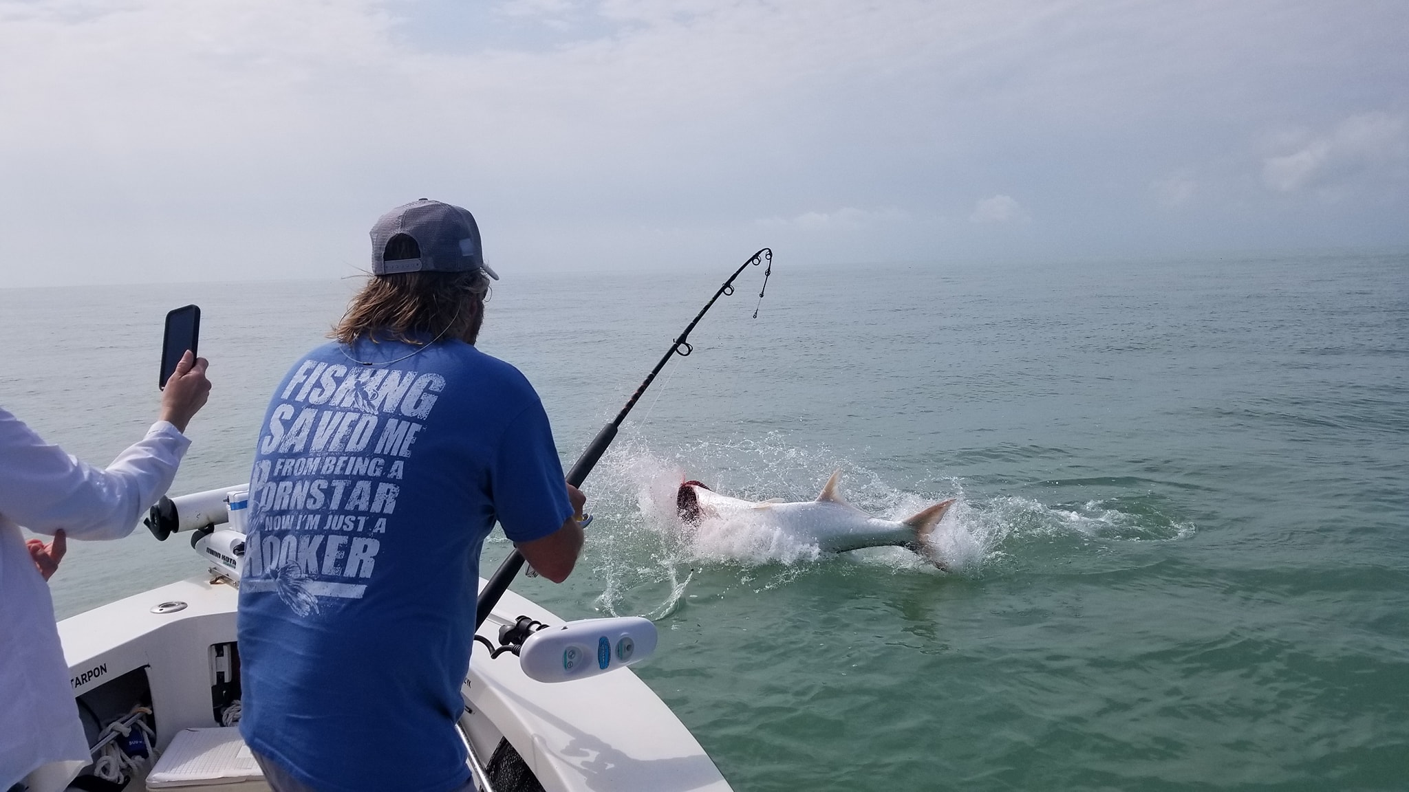 Another day on 🔥 🔥 🔥 for Curtis, Mike, and Connie. They wanted tarpon and we were suppose to fish tomorrow, but with an impending cold front tonight I thought it might be tough duty. Luckily I had today open and we switched days, as today was nice and calm, ideal tarpon condition. We found some fish early and Connie and Mike each caught a nice one. Connie’s was about an 85 lber, and Mike’s was a good 140… Big fat girthy fish! After that we kept moving and found some more tarpon on the incoming tide. Curtis was up and we didn’t get anything on the first stop, but after a move we got lined up right and within 5 minutes he hooked a slob 175 lber! He fought her well and we got her to the boat within 20 minutes. Just a beast of a fish my biggest yet this year. We caught a few tripletails after that. Then Curtis asked about snook. I said we could give it a try I had a few live shrimp. To be honest I thought we may get lucky and catch a little one or too, but we ended up finding a couple hoss fish! He bagged two one 33 incher and one 34, a good 14 and 15 lbs or so. What a way to end the day! Headed on home after that. Winds are gonna kick tonight and it’s suppose to drop to 60 the next couple nights. I’m off tomorrow and then suppose to fish Thursday, and then a couple more off days. Rarely does it work out so perfectly that I avoid the bad condition days normally my days off I wanna be out there! Anyways, might be slow fishing in the backcountry the next couple days definitely a time to listen to your guides recommendation… but hopefully after the weekend things will warm back up and maybe the tarpon will be happier again. 3 for 3