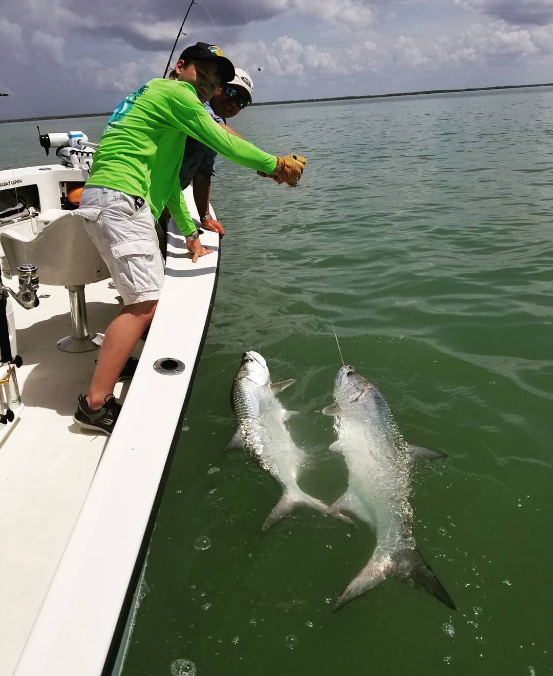 Got out with Fraser and his son Jamie over from Scotland today for a full day tarpon fishing trip. We devoted most of the day to tarpon. We caught bait early on the last of the falling tide. Easy bait again which has been nice! We found a load of tarpon nearby so we didn’t have to venture to far. An area where they were a few weeks ago but hadn’t been lately. They didn’t bite real well early we had to put some time in and move around. But eventually we got a few to respond and ended up catching three on the last of the falling tide, plus a few small sharks and bluefish. When the tide quit we moved around to the other end of the channel and there were a lot more tarpon there. Big ones here as well as medium. We set up and got bit right away, catching another one for Jamie and then Fraser had one on that we lost after a few minutes. We moved again and then got a double header! Landed both fish but didn’t cooperate for the picture. We then caught a few more, including another double header! Jamie got a big bull shark and plenty of smaller sharks as well. We finished the day with nine tarpon total, tying my best day of the year! We were going to give it a little more time but after the last double header they seemed to have disappeared! I also wanted to hang on to a little bit of bait for my charter in a couple days. We did look for permit for the last 30 minutes on a gulf spot but no luck, though did get a nice pompano! Off tomorrow then back at it thursday. Looks like tomorrow will be epic conditions again, I tried to move my Thursday trip to tomorrow but unfortunately they can’t do it. Thursday may be fine but looks like we have a little south wind coming. Light breeze but I know a couple weeks ago the south wind absolutely shut down our good fishing for a day, and gave me my only bust 0 tarpon day in recent memory! Hopefully that will not be the case and luckily these people have another day on Friday which looks back to normally northeasterly wind very light. 9 for 12