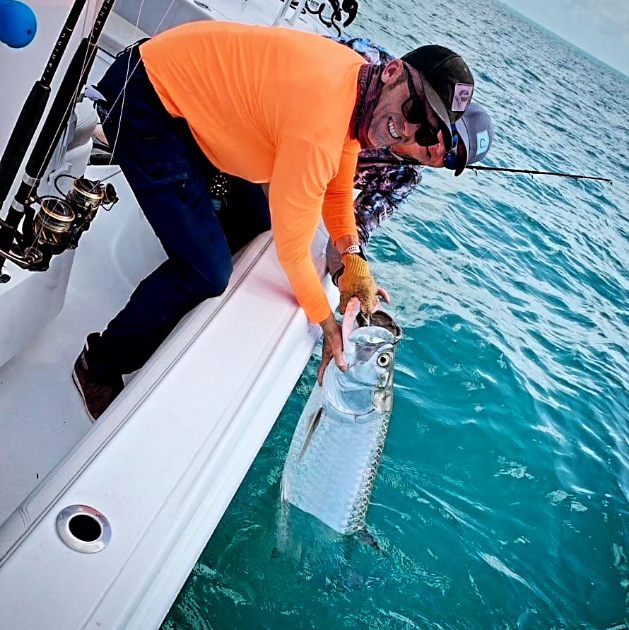 Just wrapped up another great week of islamorada tarpon fishing in May here. We had fabulous weather… it’s really stabilized for May which is nice and again the forecast still looking great in the 10-day range. Still good numbers of fish around too. We had a tournament going on last week and it was pretty busy on the water most of this week as well. Some days competing with 30+ boats down around the bridge. Though we still had good fishing overall which was great! I think we had 4-6 fish ‘technically’ landed each day this past week. A technical catch means getting them to the wind-on leader, basically the last 20 or so foot of the line. Though it was tough getting fish ‘rolled’ over which if you are wanting that glory picture is required. It really takes having the fish hooked in the proper place, having the ability to really put ample and correct pressure on the fish, and a little bit of luck to get that to happen. We are usually happy to be able to roll one fish over in a day for a good picture especially when fishing at the bridges as there is a lot that can go wrong there. But if it easy it wouldn’t be as satisfying! Anyways we had good incoming tide on our morning this past week. The bite was pretty good through that incoming, and then again on the fall in the early afternoon they rallied again. So consistent fishing through both tides. I will say after the tournament was over the fish did seem to settle down a little… we had a couple days last week where they were just acting crazy and you could tell the pressure had an effect on them… really making crazy runs through the bridge at high speed, doing figure 8s, etc… So next week should be good fishing I imagine. I did have a cancellation and could go either May 14 or 15 if someone is looking to go. June I have a few dates left as well and of course Capt. Stephen and Capt. Trent have availability as well. Those night trips are often a good bet in June as it starts to get into the heat of summer, being out in the early evening is just a nice time to be on the water and the bite often turns on near sunset.