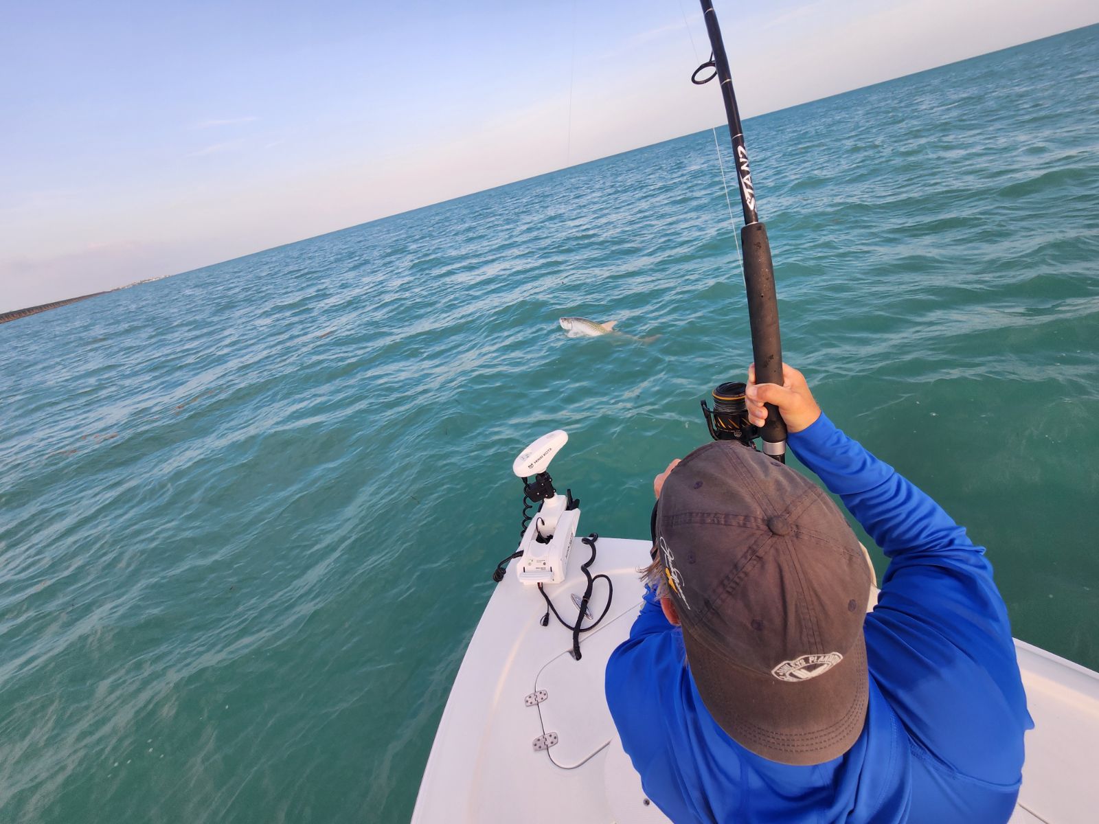 Well we had a phenomenal week of fishing here in Islamorada for tarpon this past week.  I fished my standard Monday, Tuesday, and Wednesday on 4/15/24, 4/16/24, and 4/17/24.  Conditions were fairly similar all of those days with moderate east/southeast winds.  We had just had a cool front a few days before at the end of the previous week so temperatures are actually still on the cooler side for what we’ve come to expect for this time of year in recent years.  Though this year it really seems the cooler winter-like weather and late cool fronts have been sticking around through the spring.  Overall this probably isn’t a bad thing for the ecosystem as you hear how much damage the heat of summer can do.  But it can lead to tougher fishing especially if you are here when it’s cooled off when those fish have been happy with it being warm.  Anyways luckily this was several days later and back to more spring like tradewinds and on the warming trend.