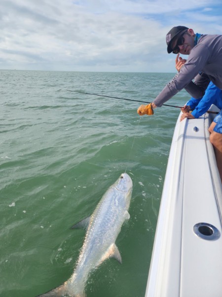 Capt. Stephen ran a trip yesterday for a full day in the backcountry of islamorada in november. It was a nice day with 10-15 mph winds out of the east/northeast… typical fall breeze with slightly cooler air getting more of that northerly quadrant as it does. Water temperatures are still pretty warm near 78 degrees out in the backcountry which definitely isn’t too cold for tarpon! Steve said mullet were plentiful they caught a few on the way into the backcountry along with there well full of pilchards that they used for snook. Tarpon were in several areas as I reported the day before and I let Capt. Steve know that. He said sure enough they stumbled in to them right off the bat and had action out of fish right way, even hooking a double header! They landed one and got him on the leader though he broke off before they could get pictures handling him boatside. After that they hit some snook spots and did pretty well, then found some more tarpon in another channel. Sure enough these guys were happy to play and they jumped another tarpon and ended up landing another. This time the fish was nice and cooperative for a boat side release shot! After that they found some redfish when the tides peaked around some shorelines. Banner day getting a backcountry slam for each of his clients! As I’ve mentioned we may continue to have some good late season tarpon action here as long as the weather stays fairly warm. We’re getting some wind tomorrow with a weak front coming in, but temperatures aren’t suppose to fluctuate too much. So I think we may still have some viable shots at tarpon for a bit longer. Looking at the longer 7 day forecast after tomorrow it’s suppose to get nice again with some calm days over the weekend. I think that could be very good for that tarpon bite if anyone is looking to go… friday, saturday, sunday, and monday look really good from here. If you want to fish for tarpon let me know I’ll give you my honest opinion on it, and of course if I can’t take you and Capt. Steve does I’m working very very closely with him so we share all the details on what is biting where and when. Hope to get you out soon!