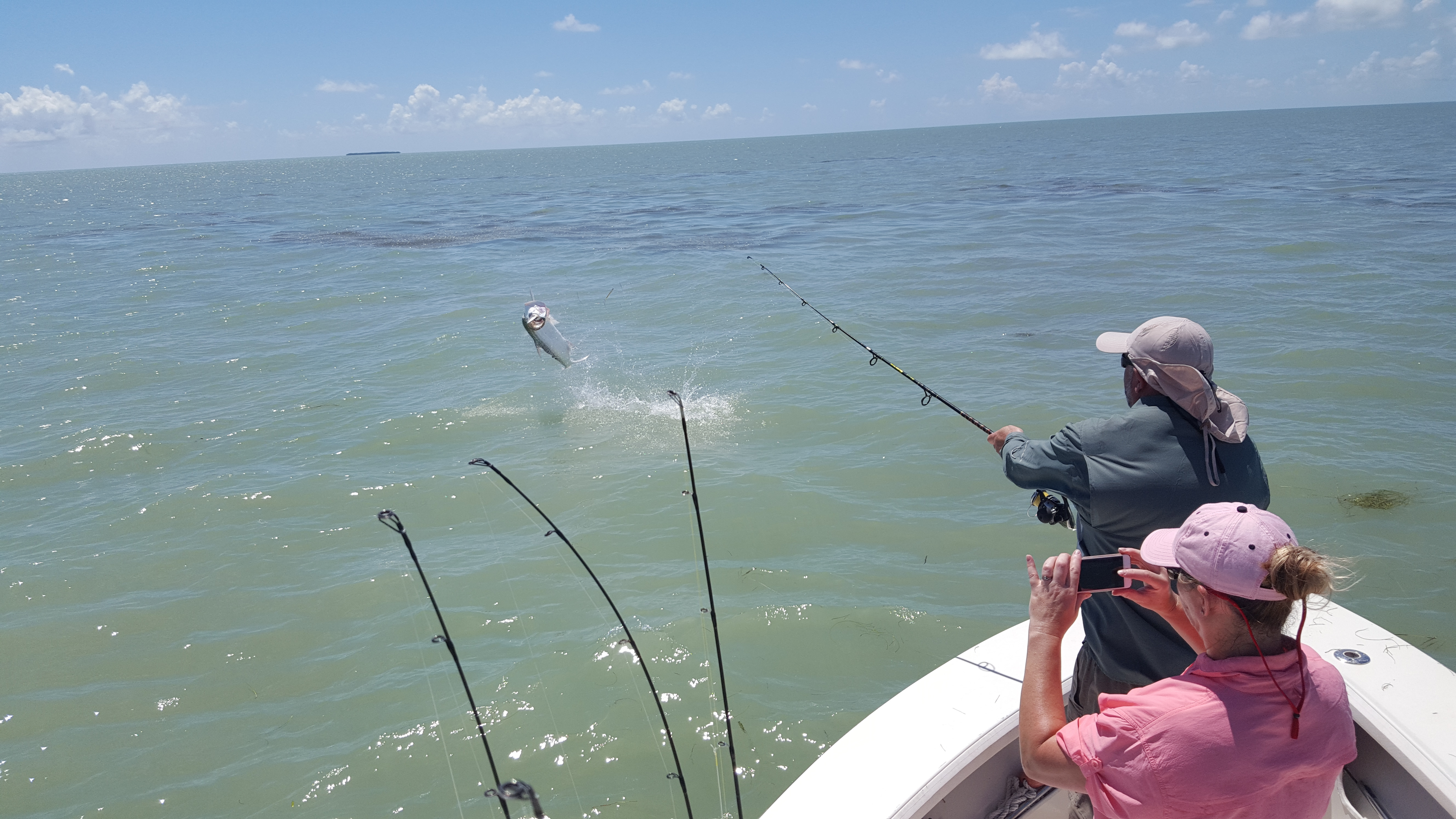 Got out with Tommy and Brian today here from Texas. Have had a lot of guys from Texas the last couple months, the Keys are a popular destination it seems! They wanted tarpon so we gave it a shot I had a little bait from yesterday though we stopped and caught some fresh over in the backcountry. We got lucky and found some tarpon in the channels back there they weren’t showing themselves much but we were able to sniff ’em out. Anyways we ended up catching a couple in the morning and several sharks. After that things slowed down we tried to do a little snook fishing but not much was going on with that we lost one of them, then we caught a couple more sharks in the afternoon saw a few tarpon in another area but no more bites. Anyways a great day the guys were happy to have each caught their first tarpon. I have several days open then fishing again Thursday – Saturday if you are looking to go! 2 for 2