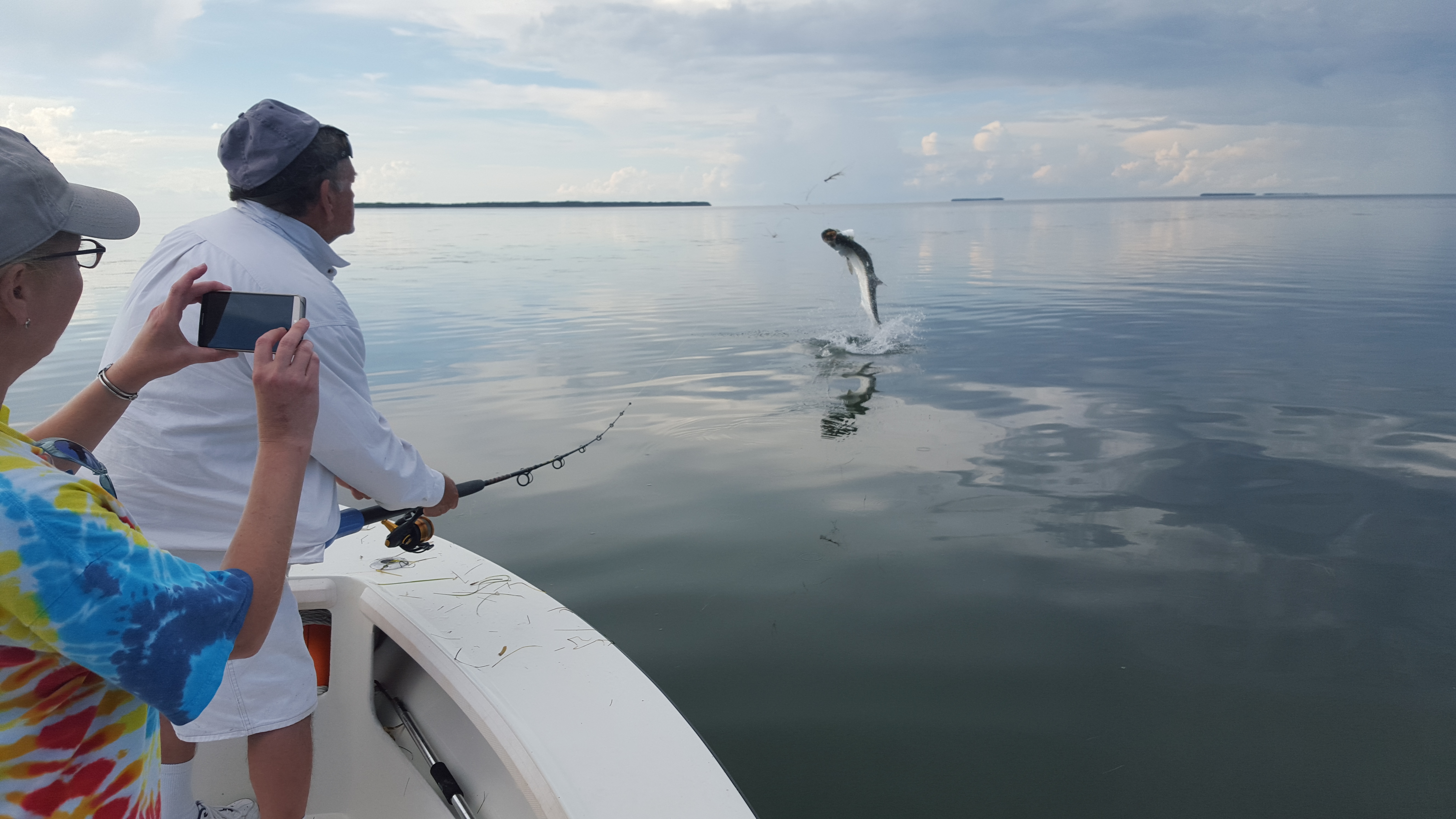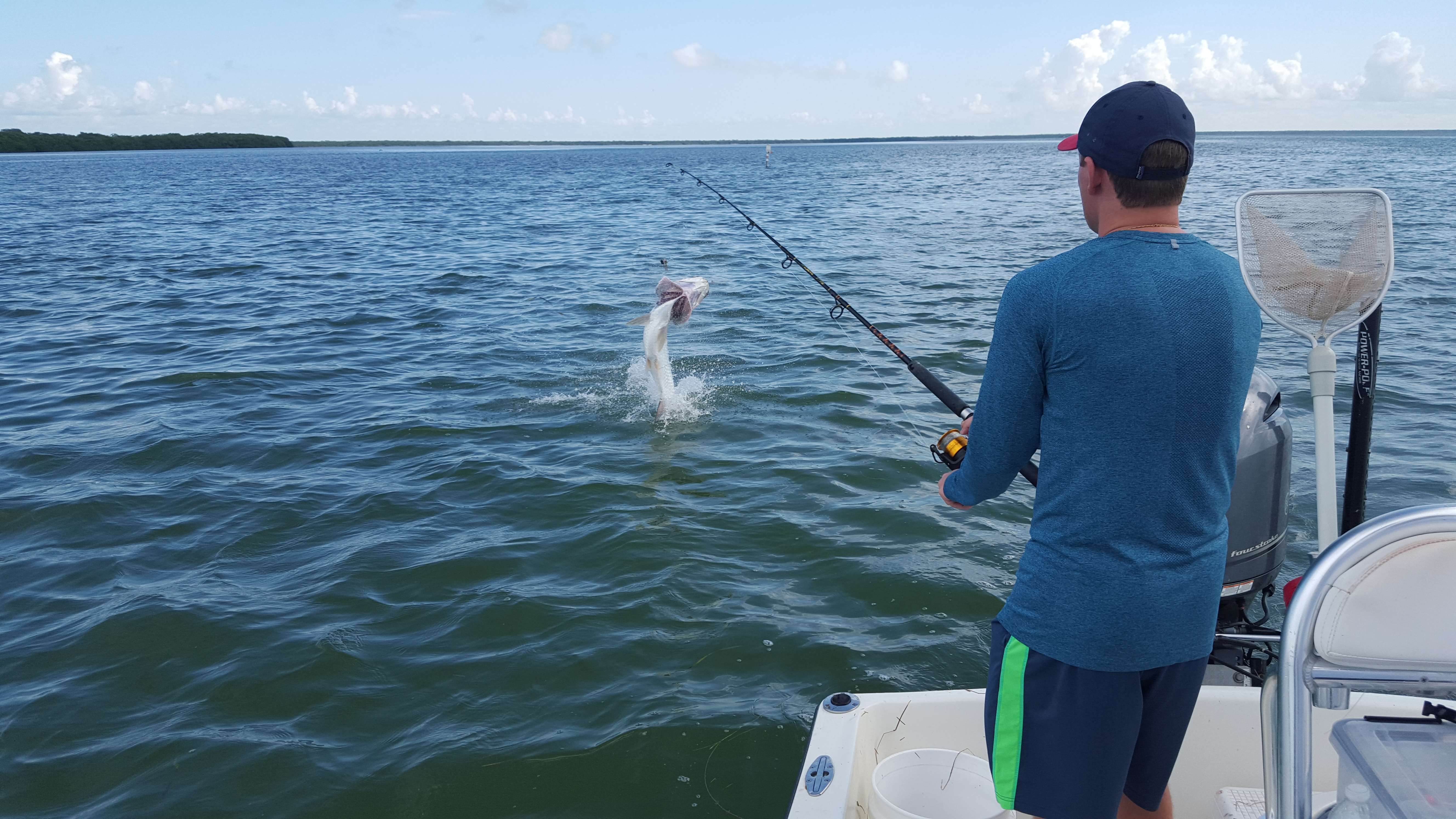 On the 25th I was hoping for more of the same… we left out early and ran towards flamingo in the everglades to tarpon fish. Wind had swung around more southeast today, it had been north/northeast the last few days which was pleasant. Bait was very tough we have the last of the falling tide in the mornings and that has been very poor for bait fishing the last few weeks. Luckily I had a couple dozen baits stashed away from the other day. But I did check a couple areas and did not see much for mullet, made a few throws and came up empty. Anyways we ran to the channels after that and the tide was slack getting ready to start coming in. I saw a few tarpon rolling around and we set up. We started fishing harder once the tide got moving 20 minutes later. Tarpon were very finicky today they did not want to bite, had rollers near us and moved around 3 times before finally getting a bite after an hour and a half. We landed a nice 65 lb fish and then set back up. The grass got really bad in the channel and I had to move around again near one of the edges, we fished a little while longer but we were no longer seeing fish so I moved to another nearby channel. We only had a half dozen baits left but we fished conservatively and after 45 minutes or so I saw a fish roll down the way. A few minutes later with our last bait out we hooked one and landed another smaller tarpon about 40 lbs. That was right about time to go was glad to get a couple on a day where somebody had flipped the switch off. Even the sharks were tough we had a couple shark bites but both cut us off. Anyways taking tomorrow off and then I have thursday and friday booked, then nothing for a little while. Getting to the end of season and I feel like I need a little break! 2 for 2