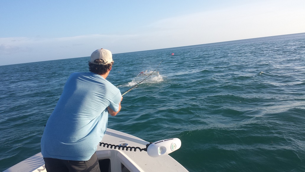 Well I had the day off from tarpon fishing yesterday. My anglers wanted to go in the back and pull on big stuff, mud marlin and sharks. We did just that and were tight on a half dozen mudsters and another half dozen big lemons all day long. I was itching to be tarpon fishing though I heard it was going off around town that day and this morning too, but I had this morning off to take care of an oil change and routine maintenance. You also need to take a morning off here and there it’s nice not to be up at 5 AM! But we got back on it tonight and fishing was good. I had Bill from NJ out who had fished here before and was looking to land a nice tarpon. We had to look around a bit at first I tried some areas that were reportedly good this afternoon with the last of the incoming tide but the fish moved out when the tide changed I guess. We found them eventually though and the action was hot when we got there! We caught 3 out of probably 8 solid bites and several other cheap shots which was very exciting, I don’t think we went more than 5 minutes without a fish behind the boat going crazy. All on live mullet. One nice 100+ lber that we leadered but he got away before we could get him up for a boatside pic, but the others were a bit easier to handle. Fun night, looks like a front coming in tomorrow but not going to get real cold but may slow the bite down a little. Maybe it will put off all the weekend warriors!