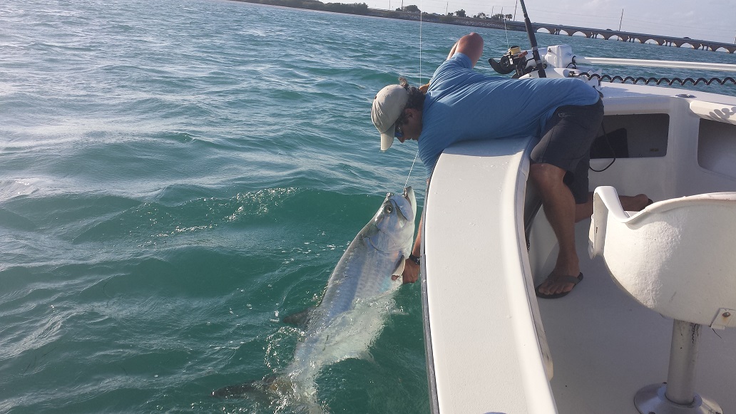 Well we had a minor front come in this morning. Winds were a breeze out of the west this morning then this afternoon it was honking pretty good northwest. We caught a couple tarpon in the first 2 hours on our morning trip. After that it seemed to slow down and we moved down to try some live bait spots. The live mullet were tough this morning, the commercial guys brought some down from key largo so we got a few from them. We saw plenty of fish at the bridges but they were not interested in the mullets. This evening we went back to the bridges, the tide was falling and it was ripping! Unfortunately the mullets were small and not strong enough to keep up with the current. We were able to fish a handful of stronger larger ones for a couple hours, but only had a couple of cheap shots on them. Saw a few boats hook fish, but only maybe 3 out of about a dozen boats in 2 hours. So we ran back up the road and tried my morning spot. Several boats in there… I hate seeing so many boats in some of our holes where we try to only go when we need to catch one… especially the weekend warriors! Anyways we fished it hard and had a few pickup and drops, then finally got tight on a nice 80 lb fish. We chased him through the crab trap buoys and got leader on him, but unfortunately he came unbuttoned before we could get a good picture. But a release! So 3 for the day not bad for the conditions! Looks to be northwest tomorrow and north monday though the wind speed is coming down a bit. I really hope this is the last of the cold fronts!!!